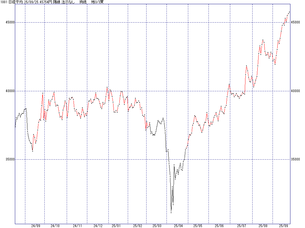 2025年9月25日(木)日中の取引終了時点で算出した中源線シグナルです。