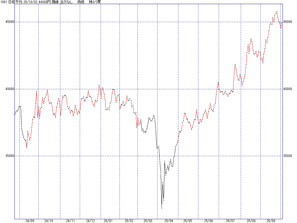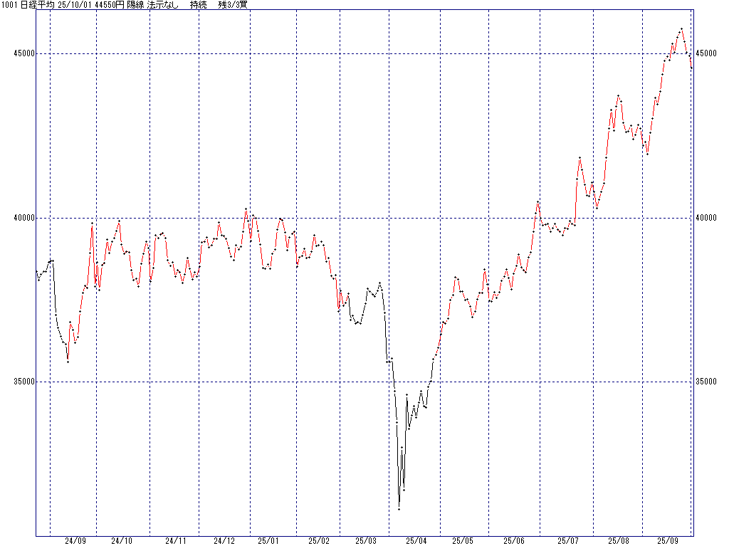 2025年10月1日(水)日中の取引終了時点で算出した中源線シグナルです。
