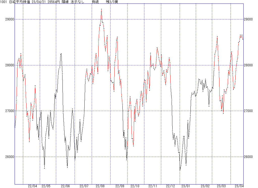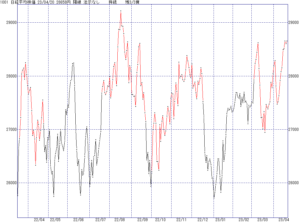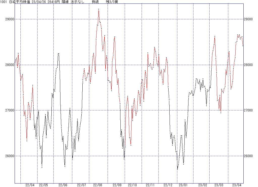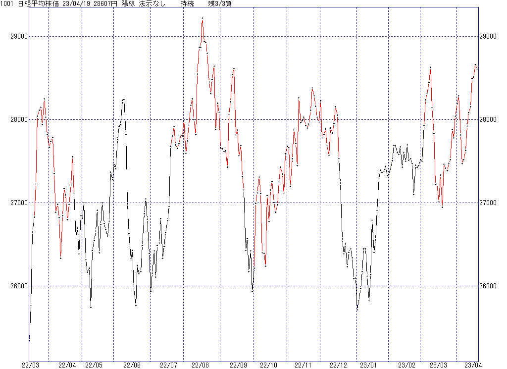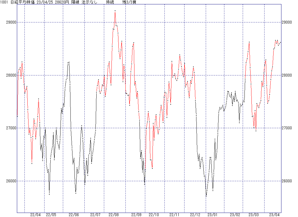 2023年4月26日(水)日中の取引終了時点で算出した中源線シグナルです。