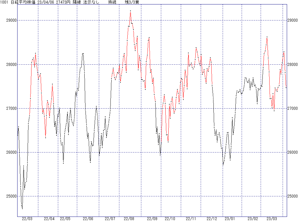 2023年4月6日(木)日中の取引終了時点で算出した中源線シグナルです。