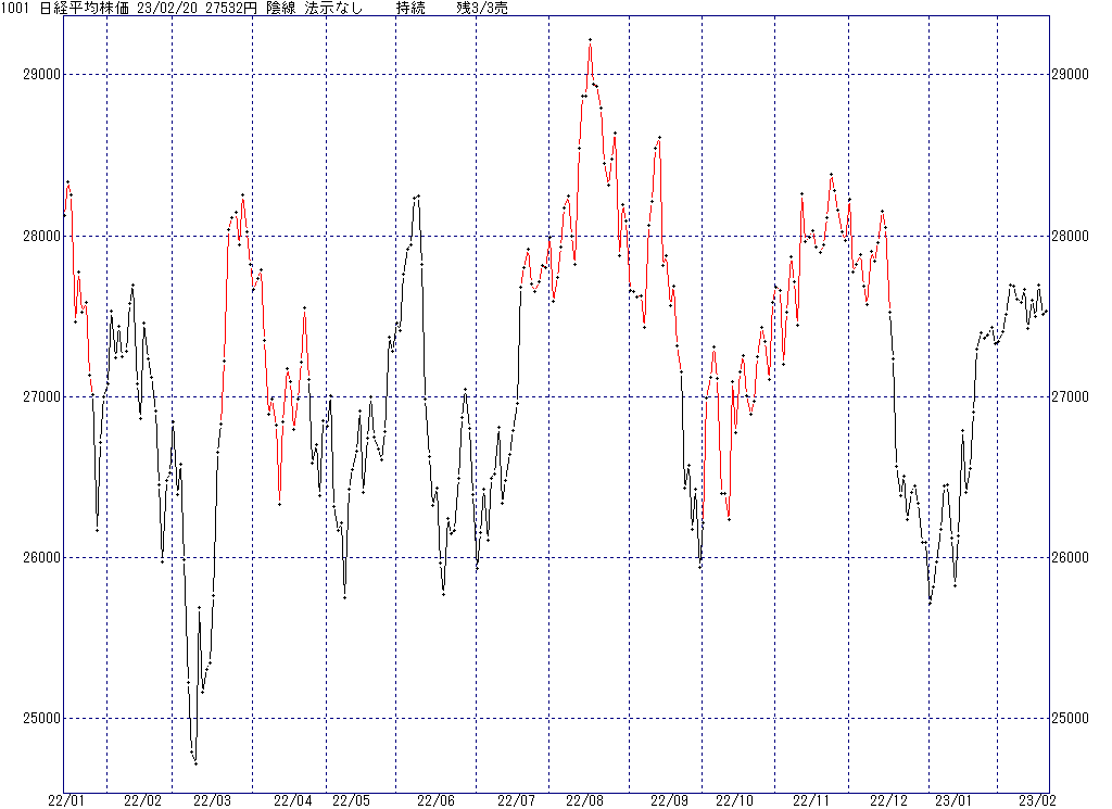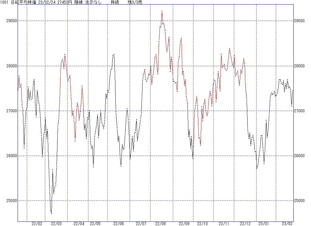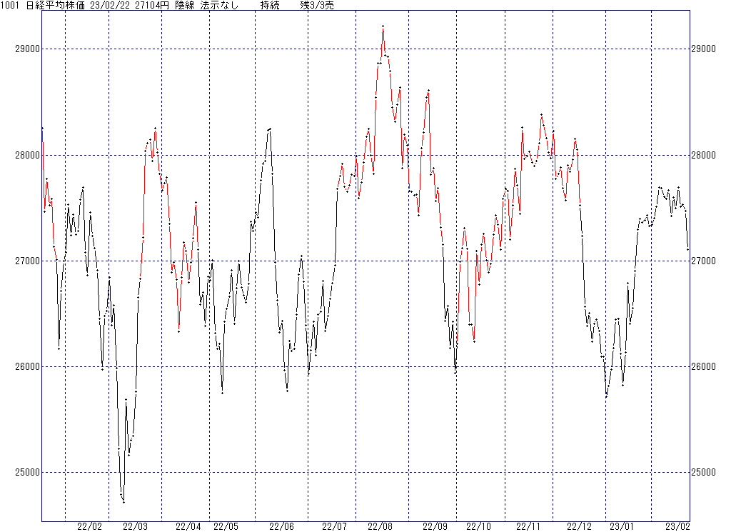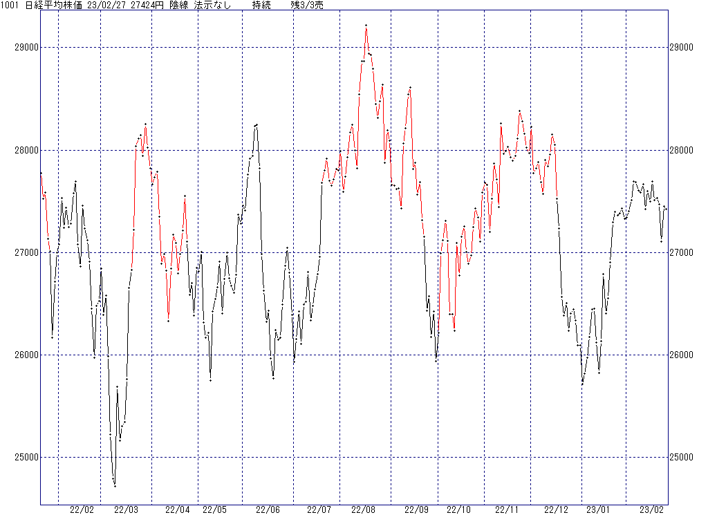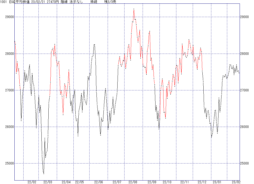 2023年2月27日(月)日中の取引終了時点で算出した中源線シグナルです。