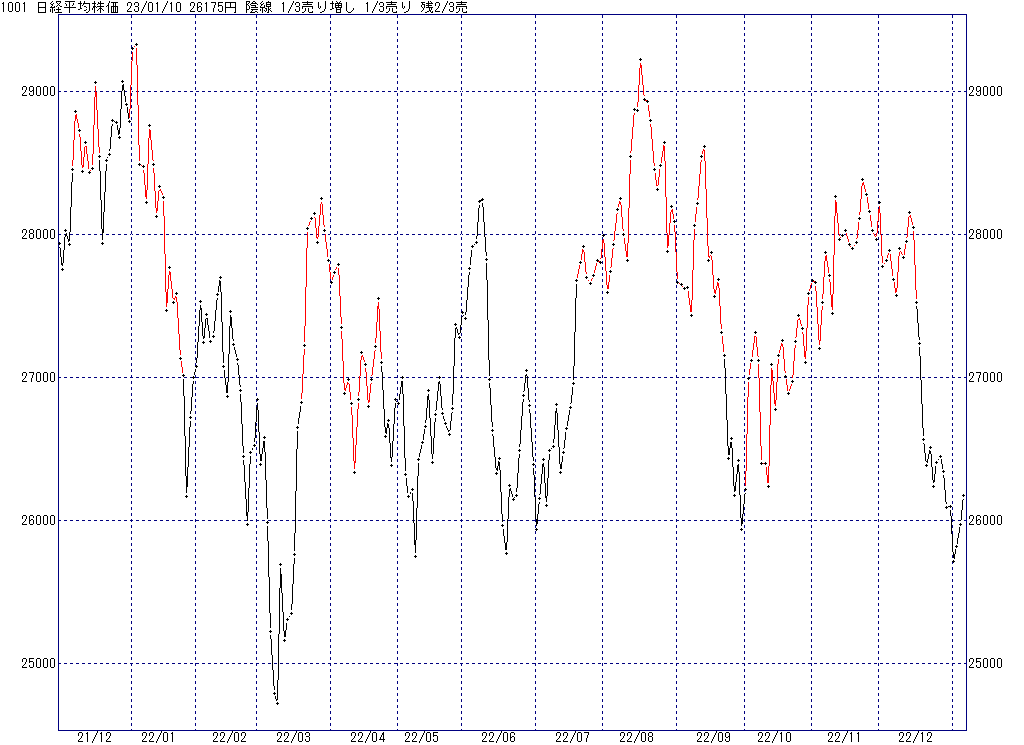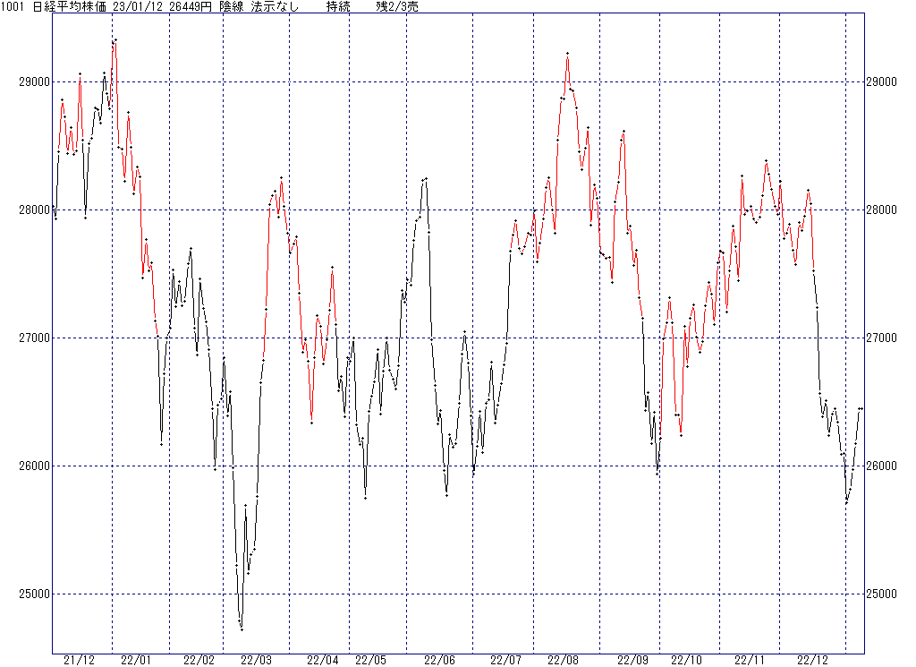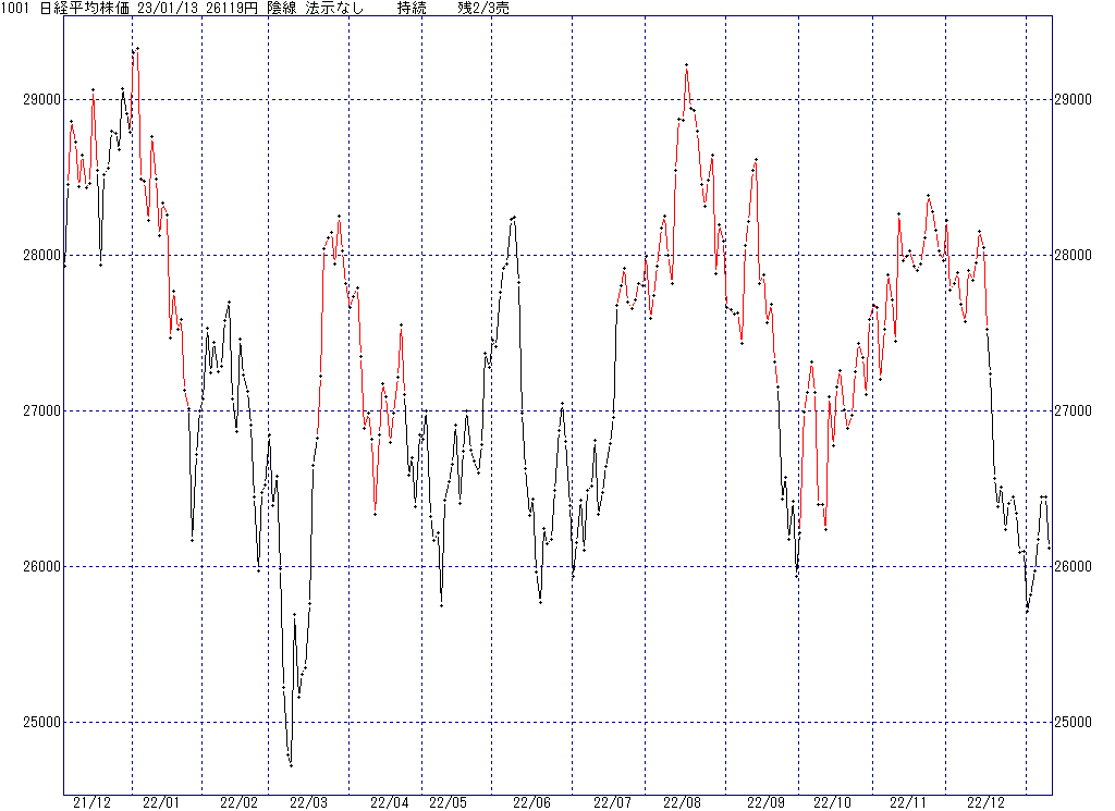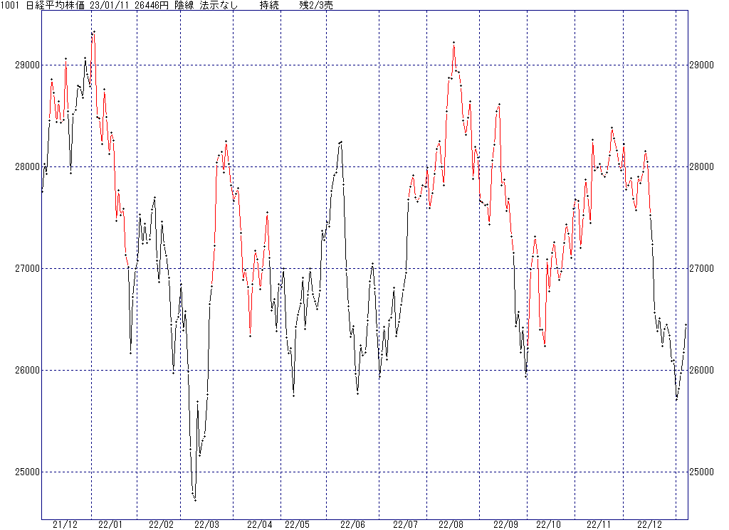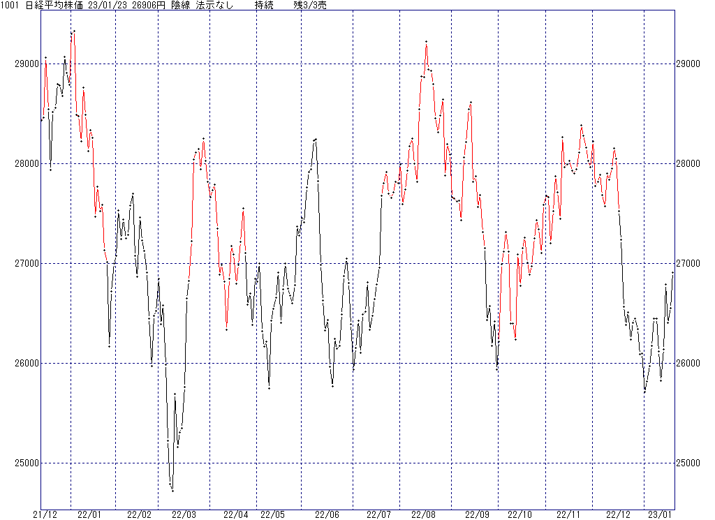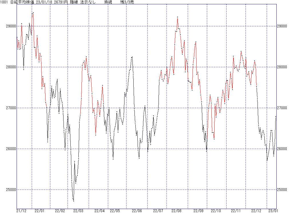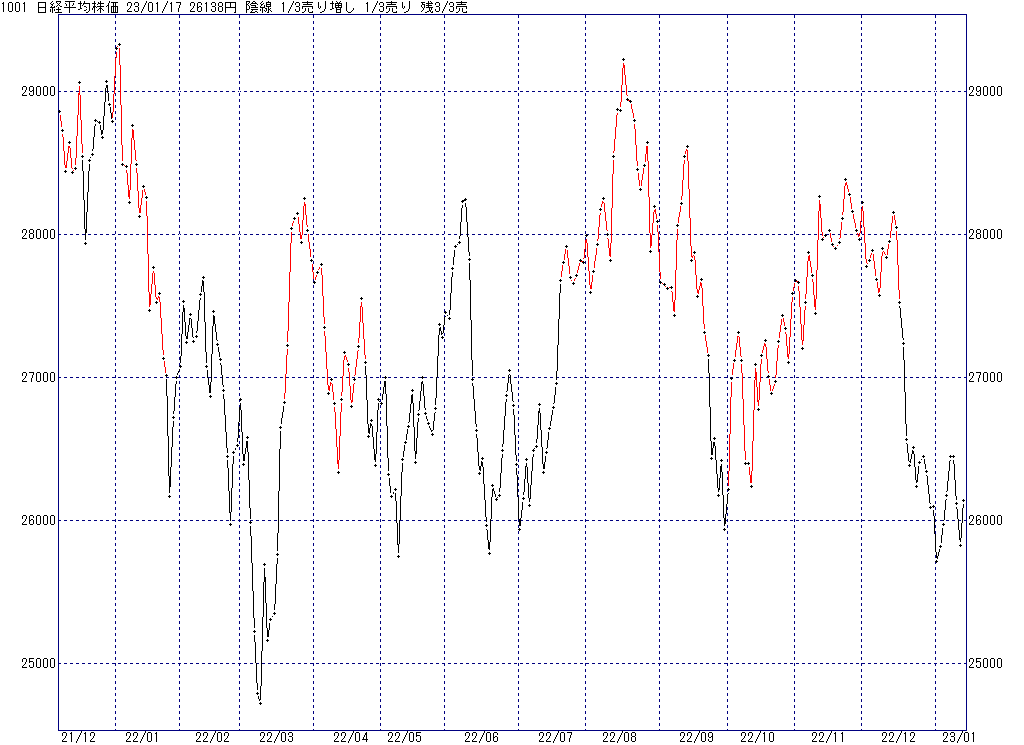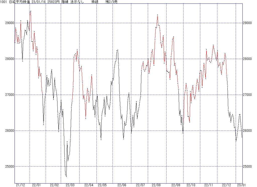 2022年1月23日(月)日中の取引終了時点で算出した中源線シグナルです。