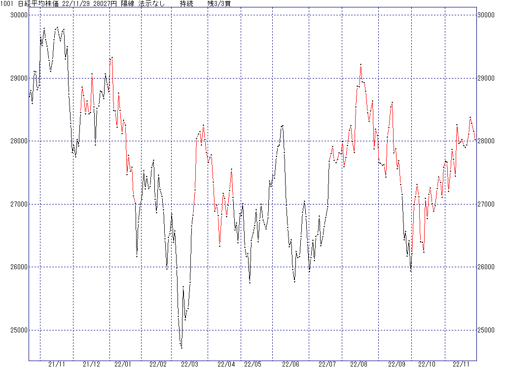 2022年11月30日(水)日中の取引終了時点で算出した中源線シグナルです。