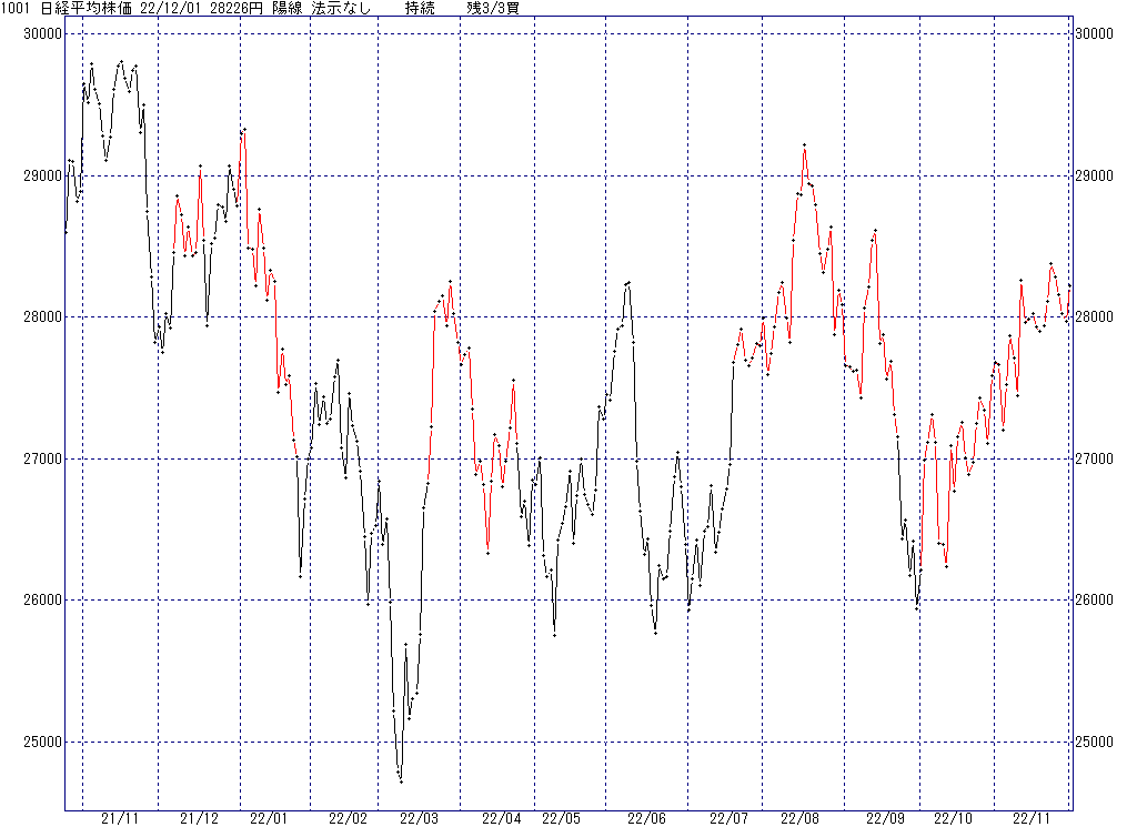 2022年12月1日(木)日中の取引終了時点で算出した中源線シグナルです。