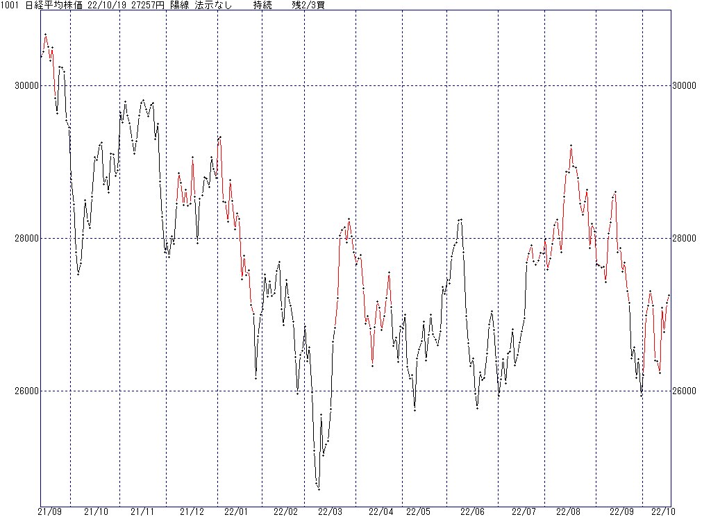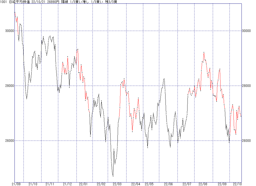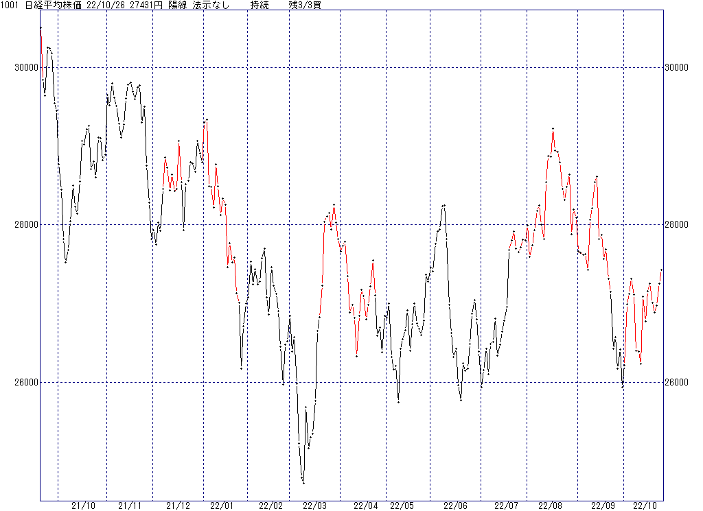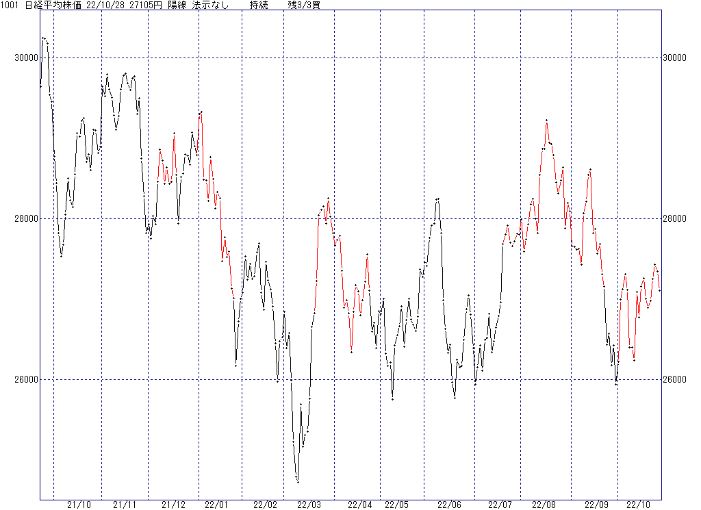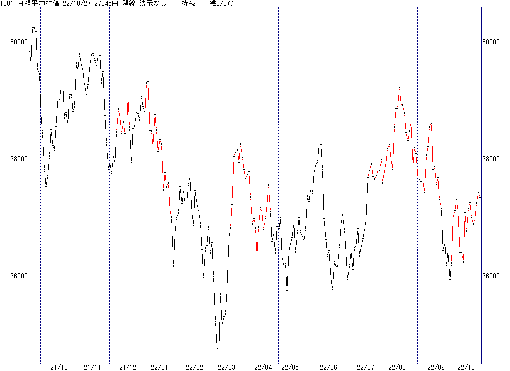 2022年10月28日(金)日中の取引終了時点で算出した中源線シグナルです。