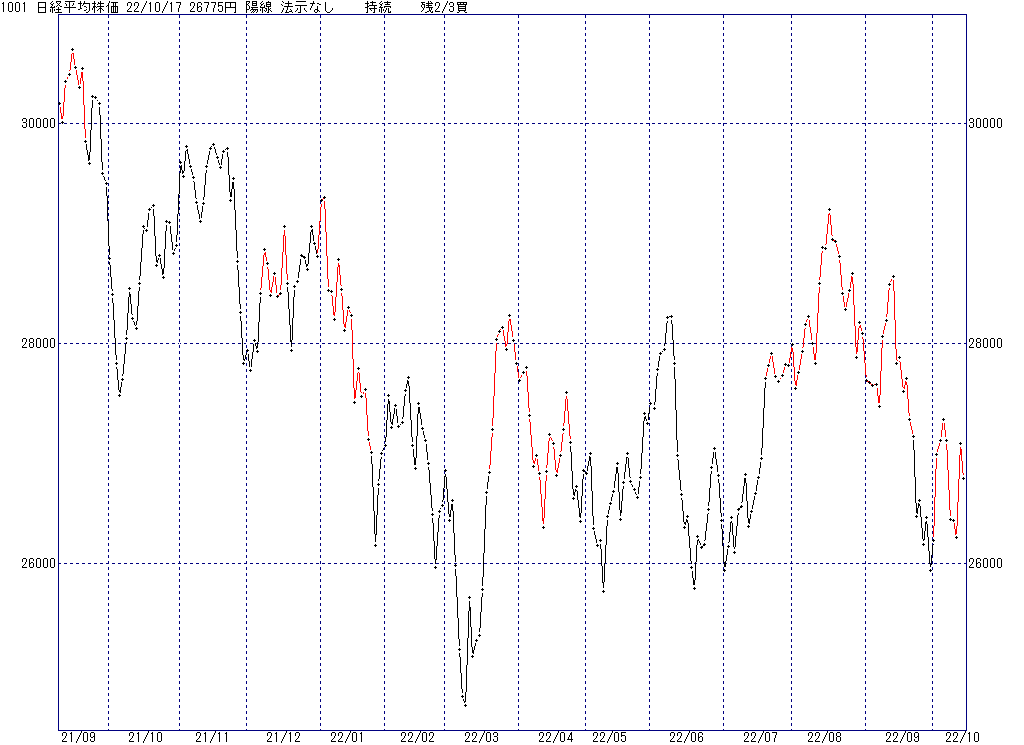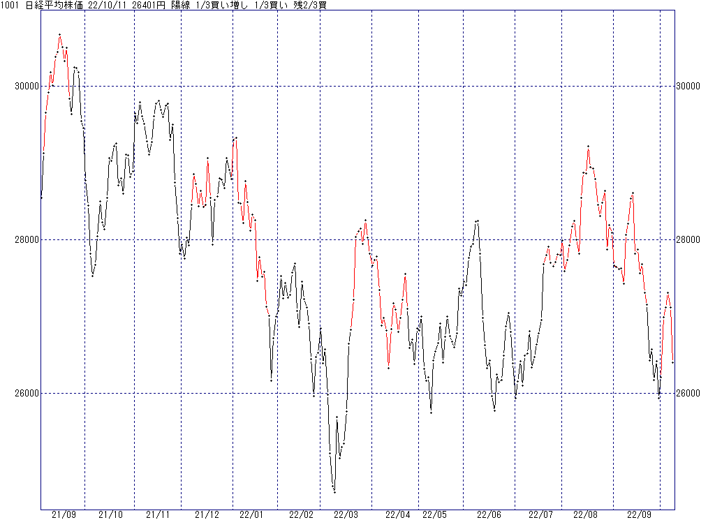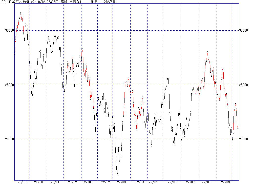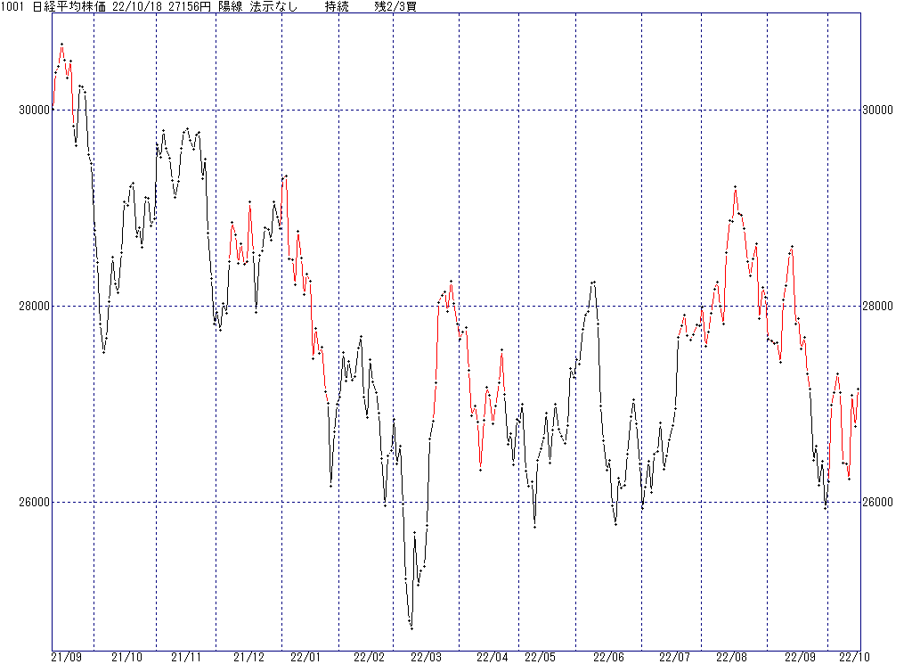 2022年10月18日(火)日中の取引終了時点で算出した中源線シグナルです。