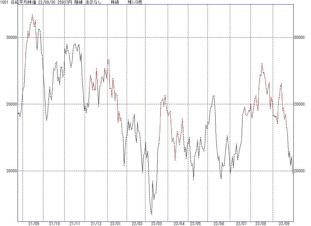 2022年9月28日(水)日中の取引終了時点で算出した中源線シグナルです。