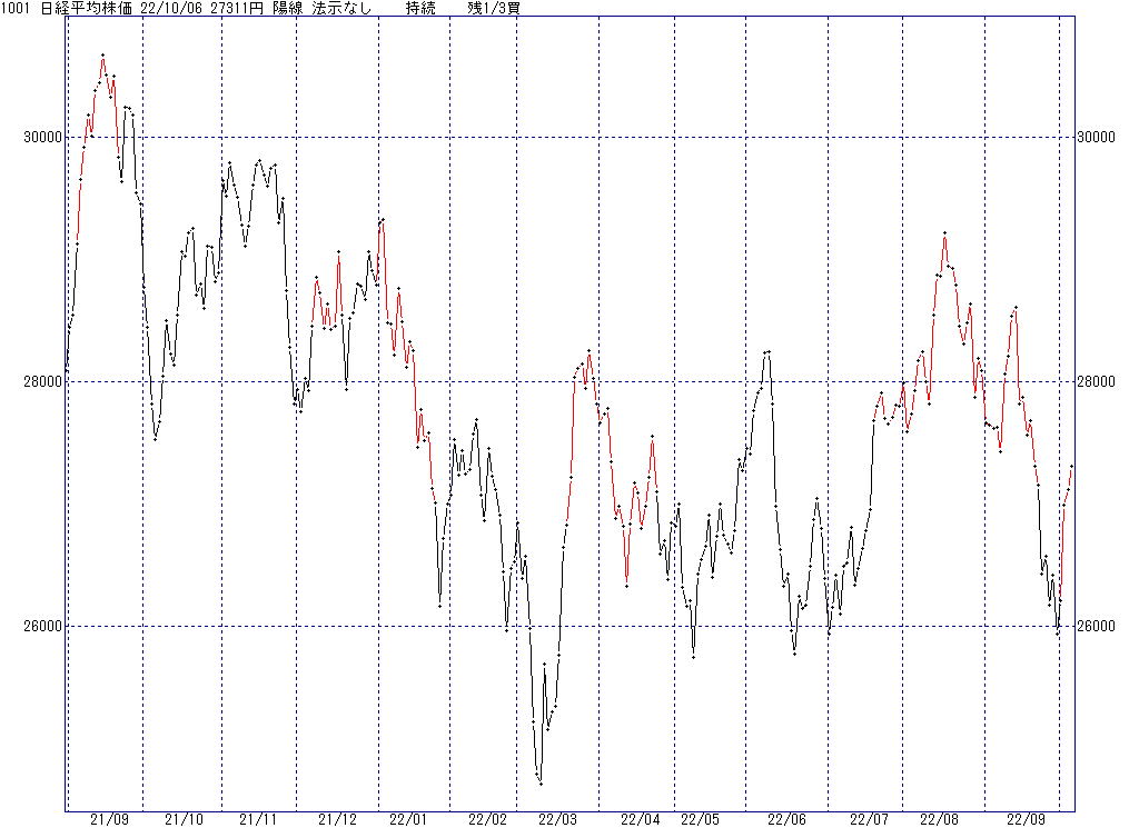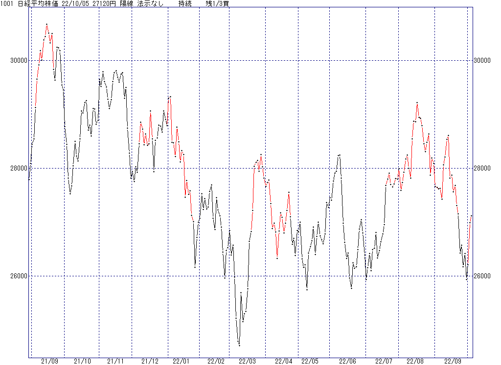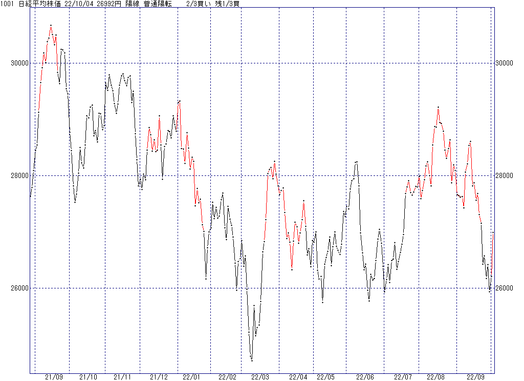 2022年10月3日(月)日中の取引終了時点で算出した中源線シグナルです。