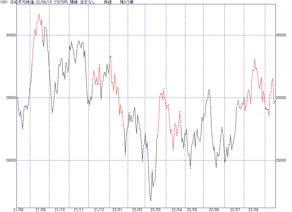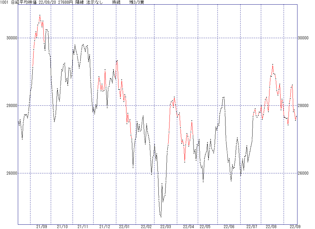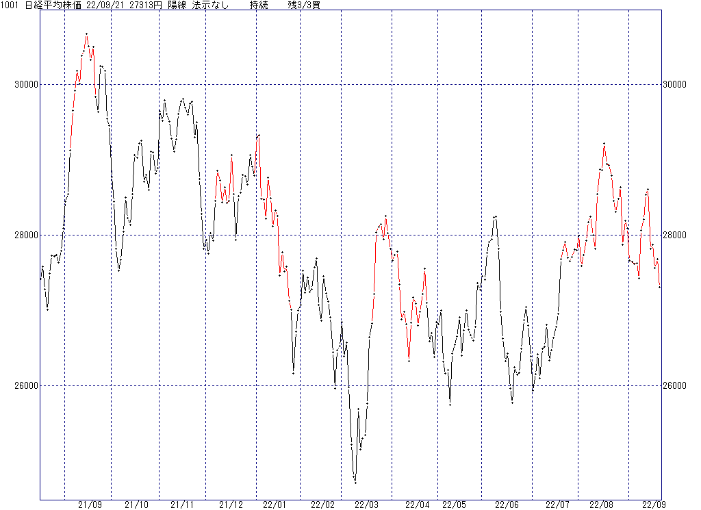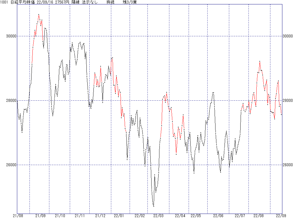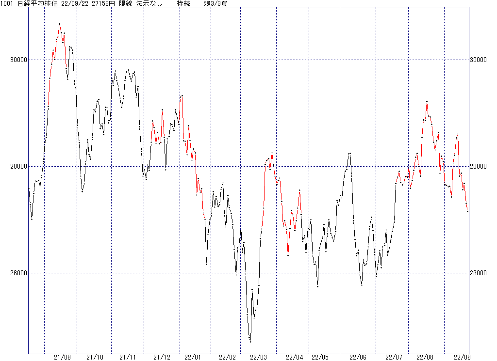 2022年9月27日(火)日中の取引終了時点で算出した中源線シグナルです。
