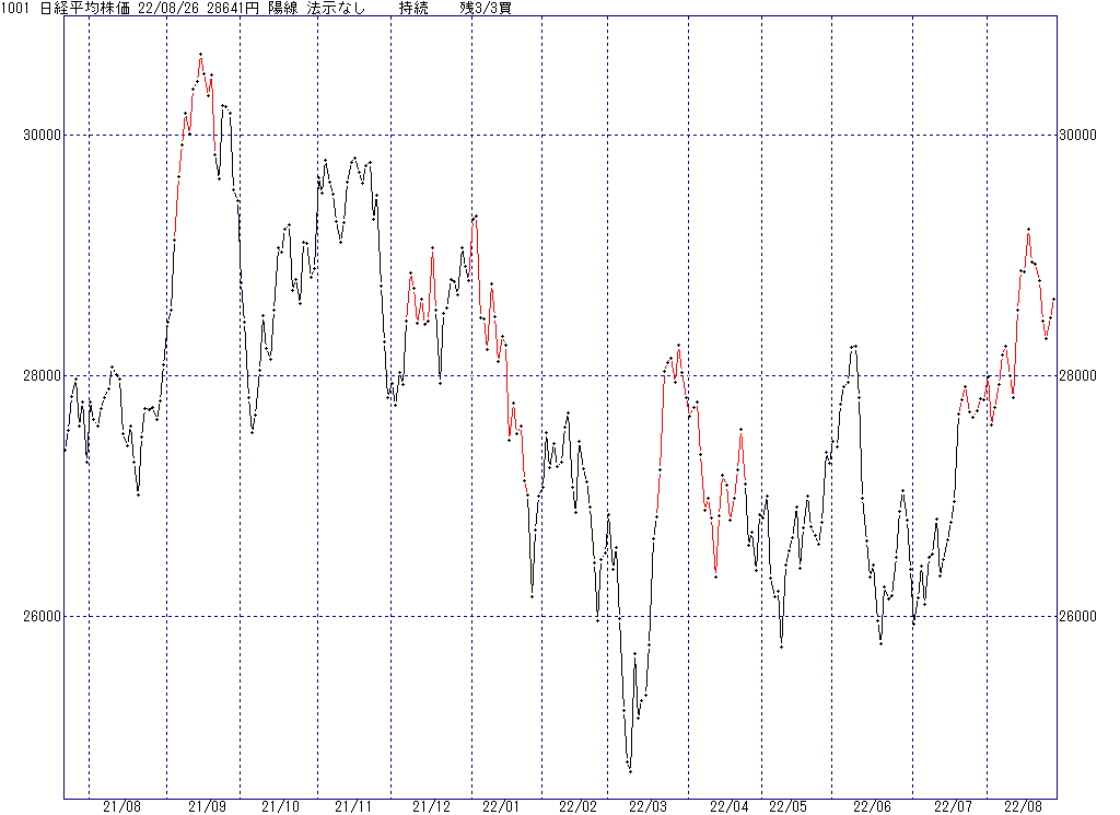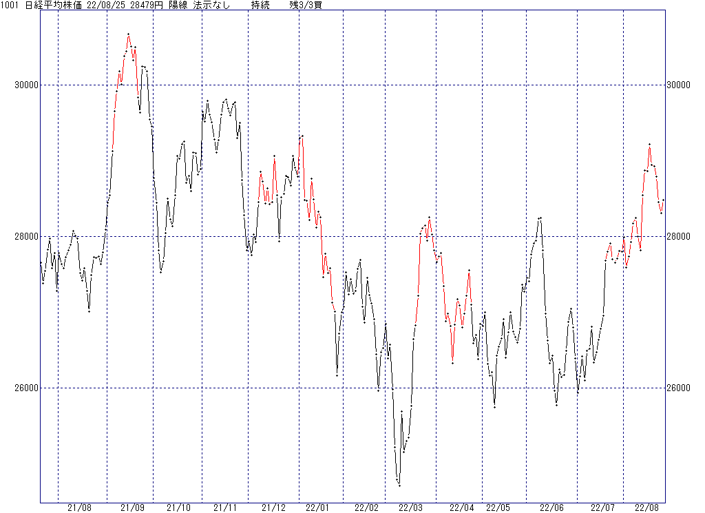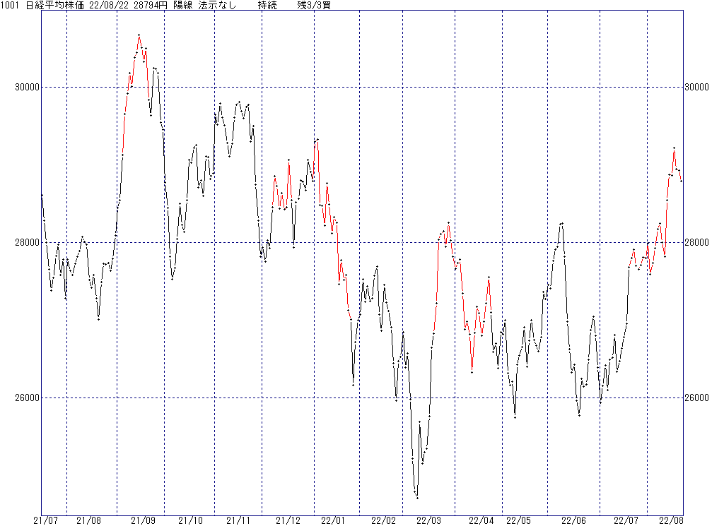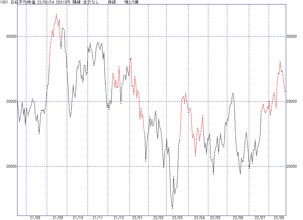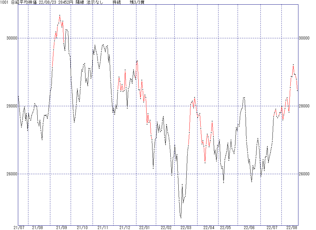 2022年8月22日(月)日中の取引終了時点で算出した中源線シグナルです。