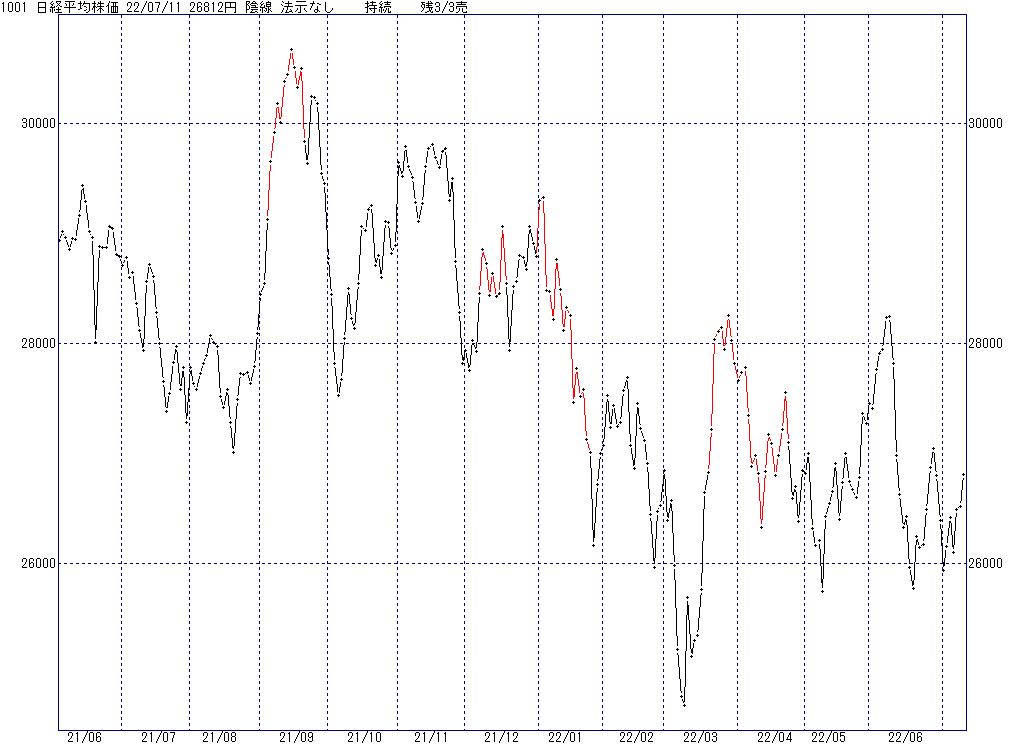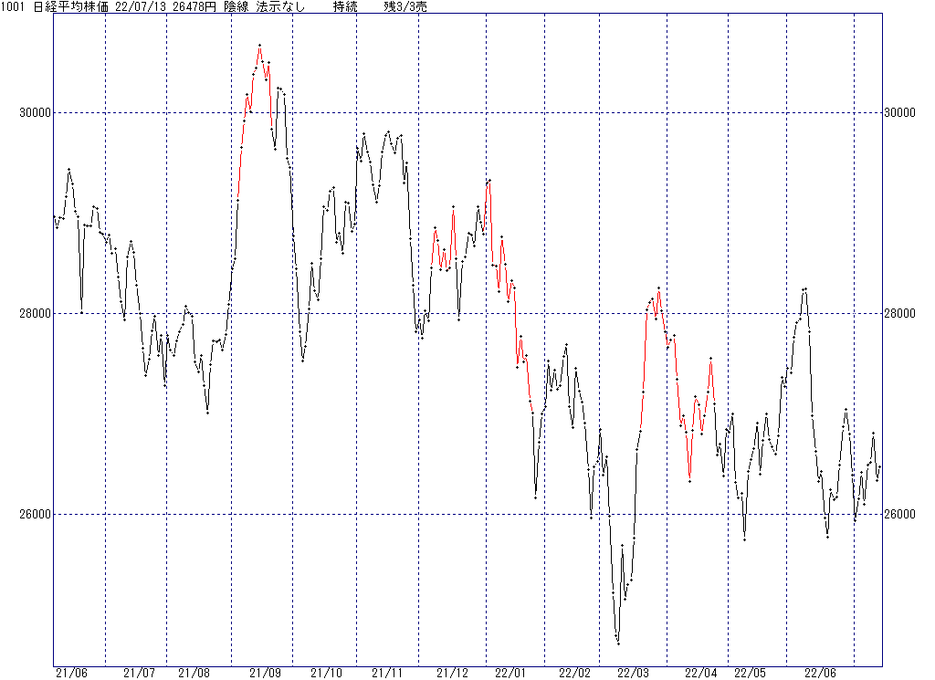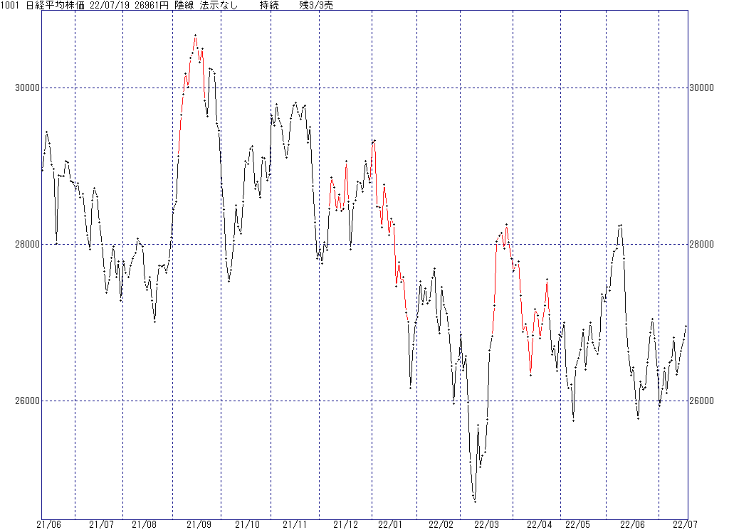 2022年7月19日(火)日中の取引終了時点で算出した中源線シグナルです。