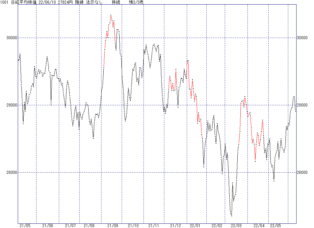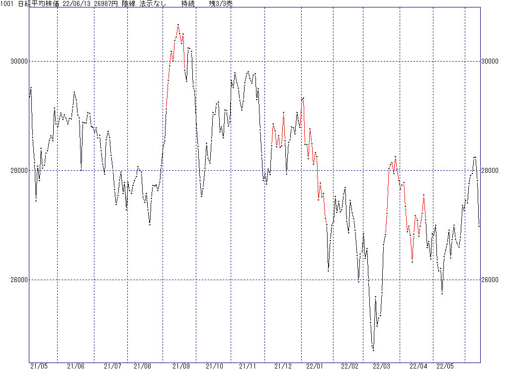 2022年6月13日(月)日中の取引終了時点で算出した中源線シグナルです。