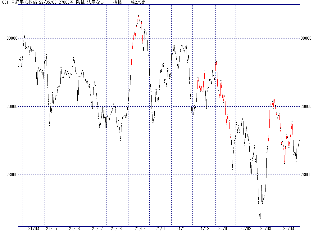 2022年5月2日(月)日中の取引終了時点で算出した中源線シグナルです。