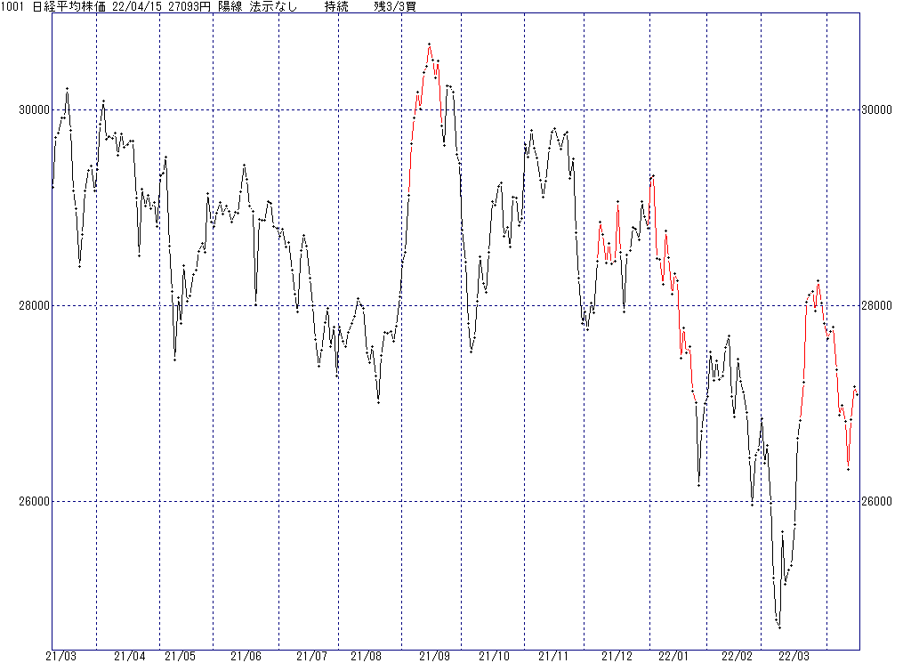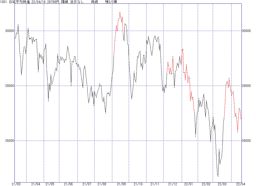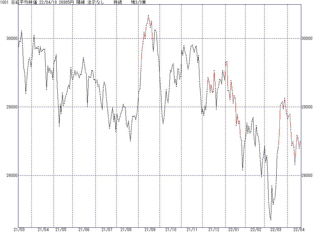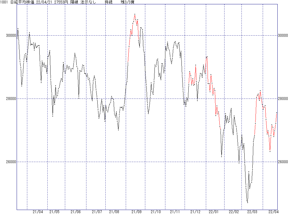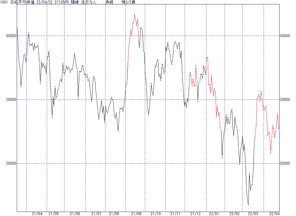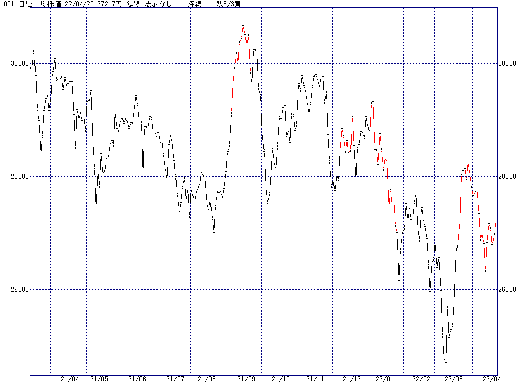 2022年4月25日(月)日中の取引終了時点で算出した中源線シグナルです。
