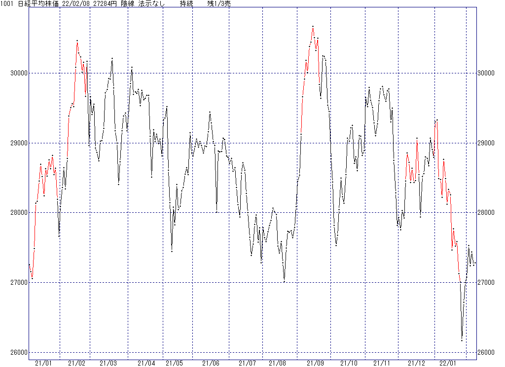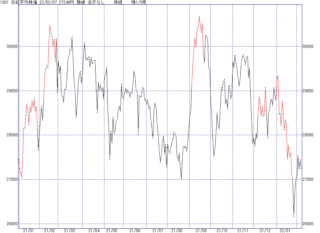2022年2月7日(月)日中の取引終了時点で算出した中源線シグナルです。