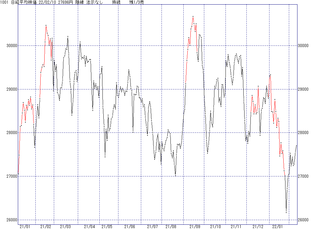 2022年2月10日(木)日中の取引終了時点で算出した中源線シグナルです。