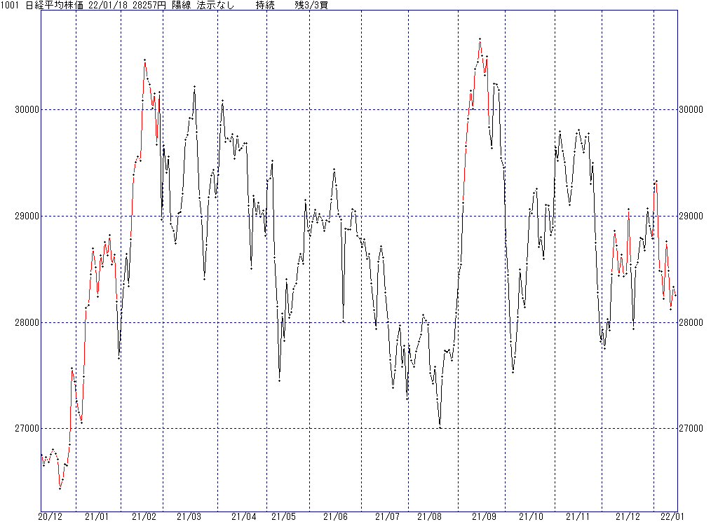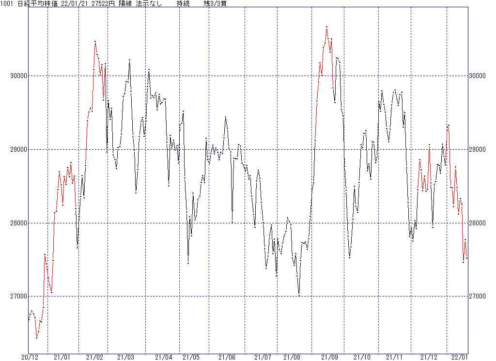 2022年1月21日(金)日中の取引終了時点で算出した中源線シグナルです。