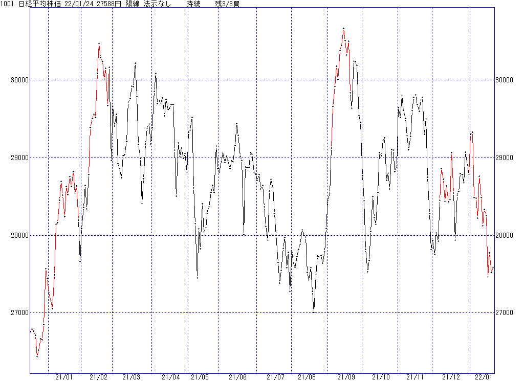 2022年1月24日(月)日中の取引終了時点で算出した中源線シグナルです。