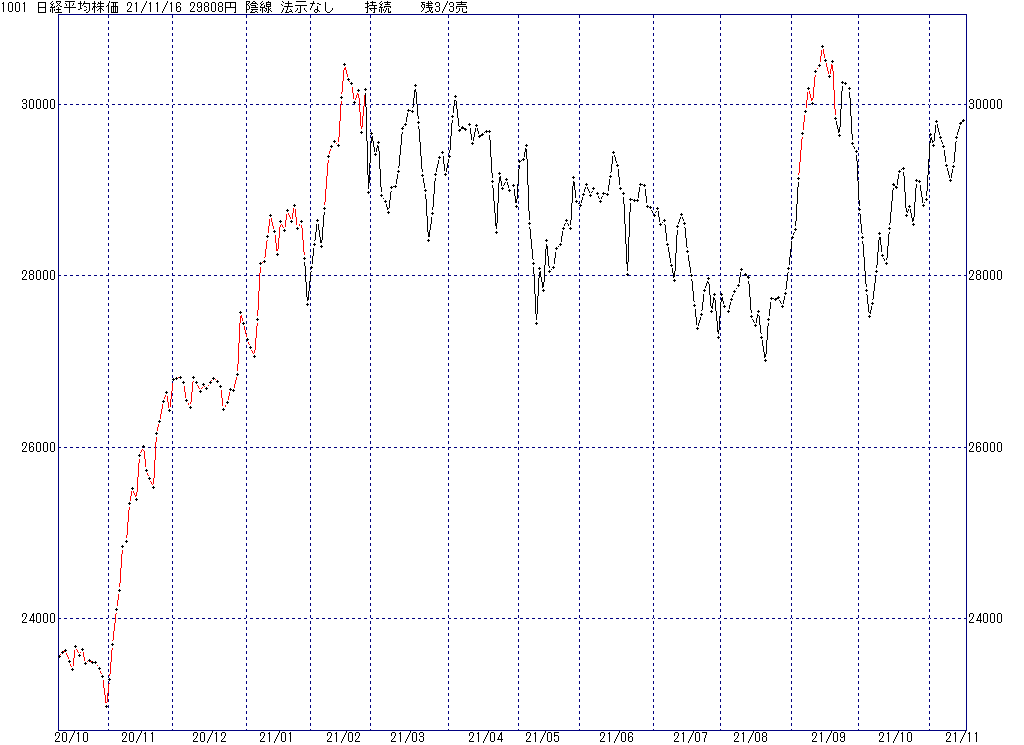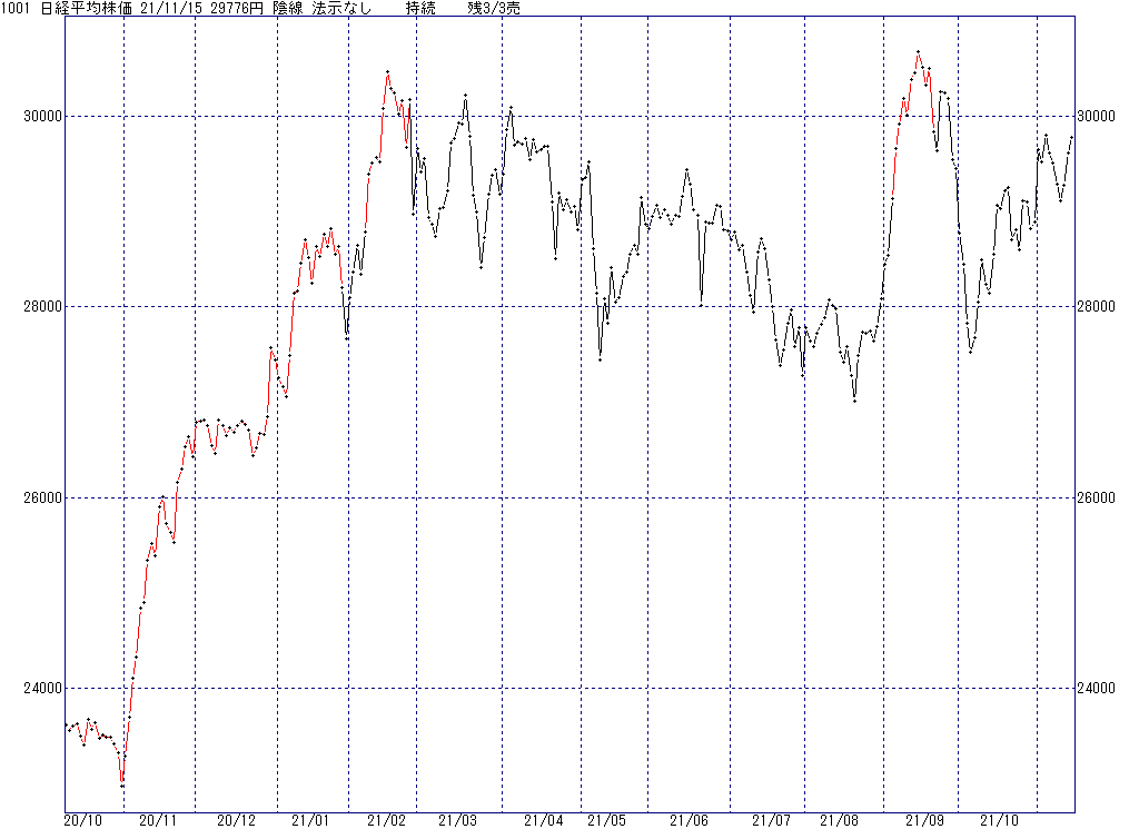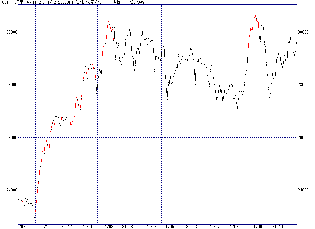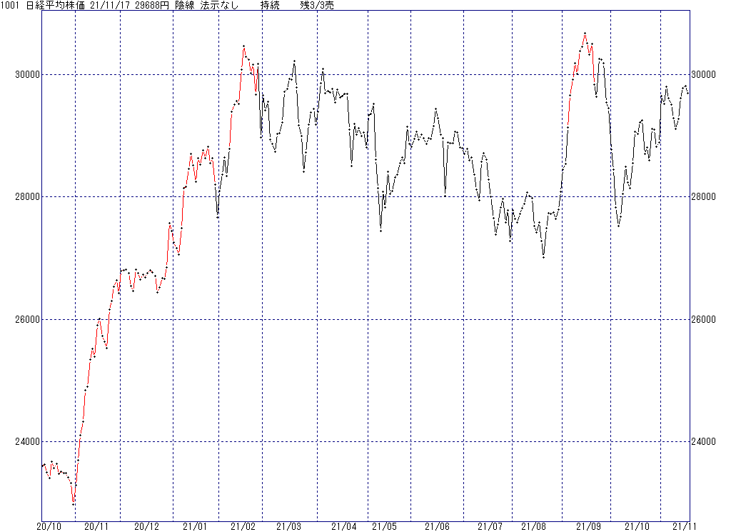 2021年11月22日(月)日中の取引終了時点で算出した中源線シグナルです。
