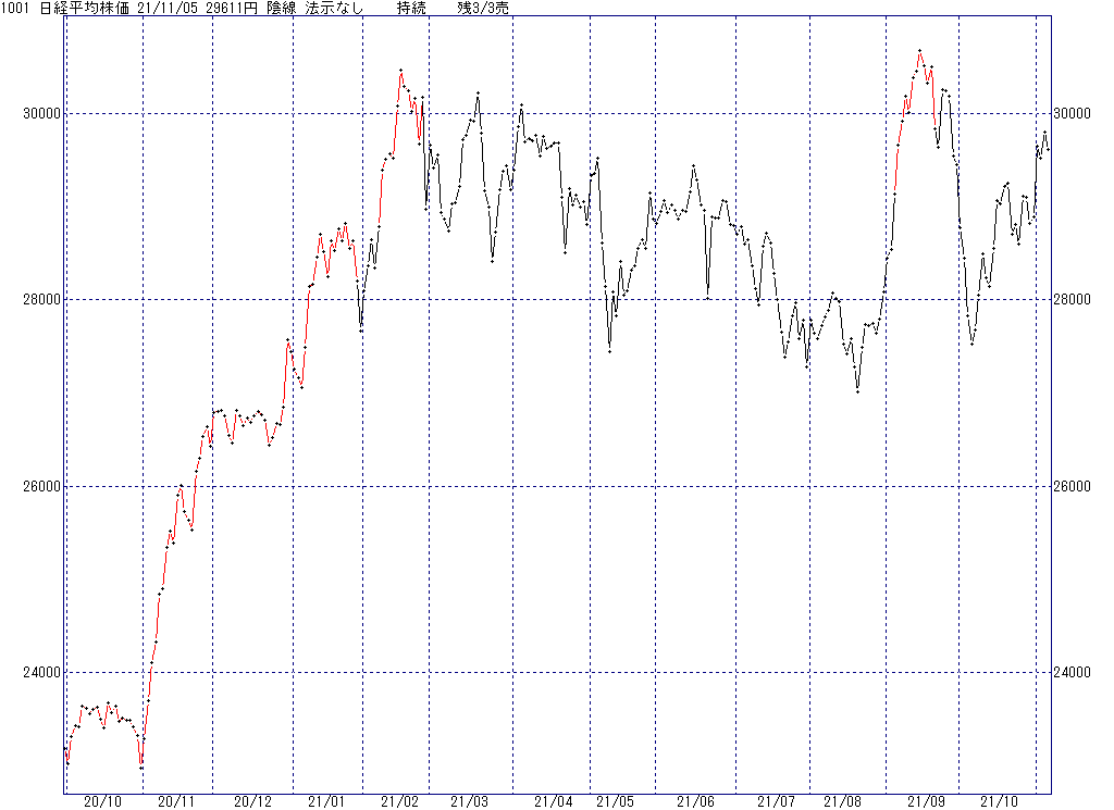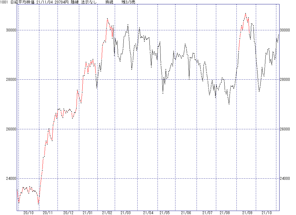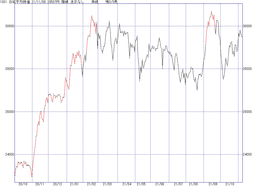 2021年11月9日(火)日中の取引終了時点で算出した中源線シグナルです。