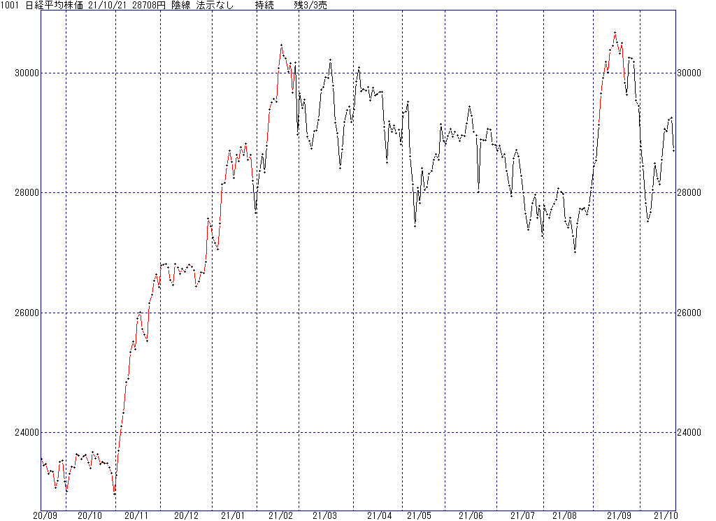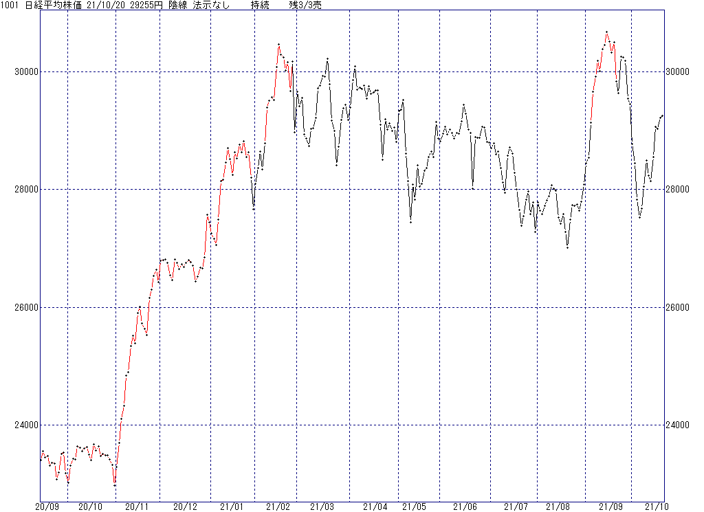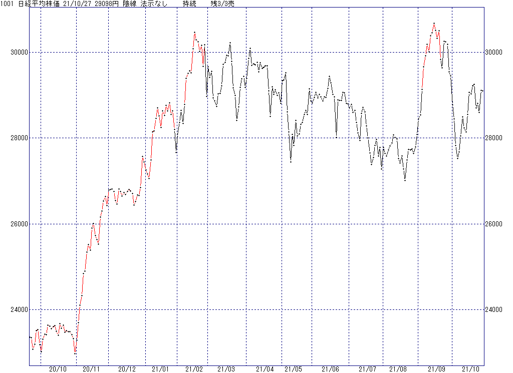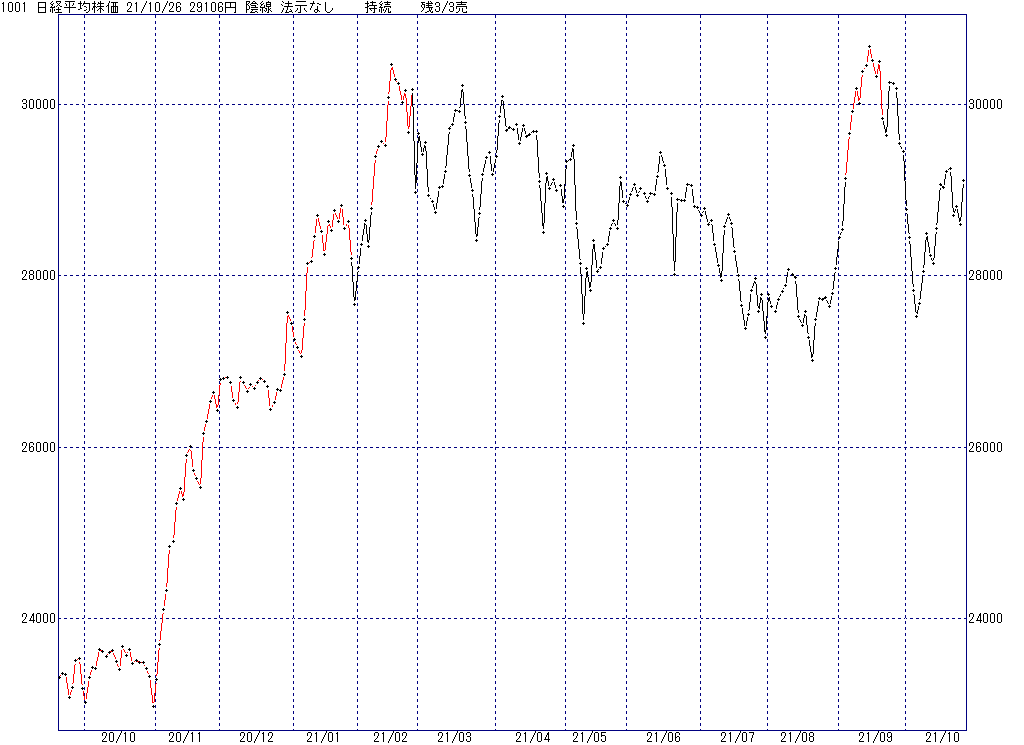 2021年10月29日(金)日中の取引終了時点で算出した中源線シグナルです。