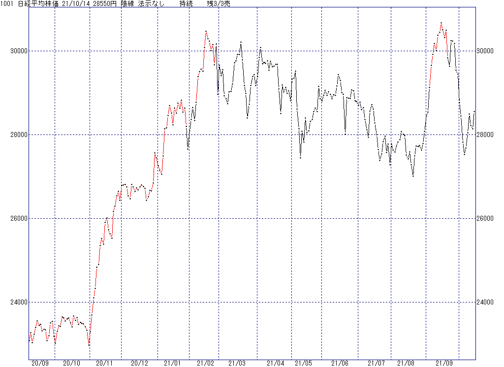2021年10月14日(木)日中の取引終了時点で算出した中源線シグナルです。