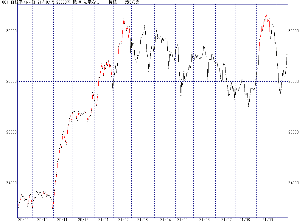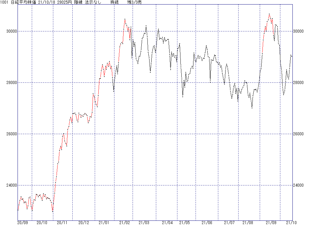 2021年10月18日(月)日中の取引終了時点で算出した中源線シグナルです。