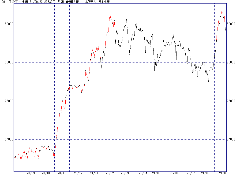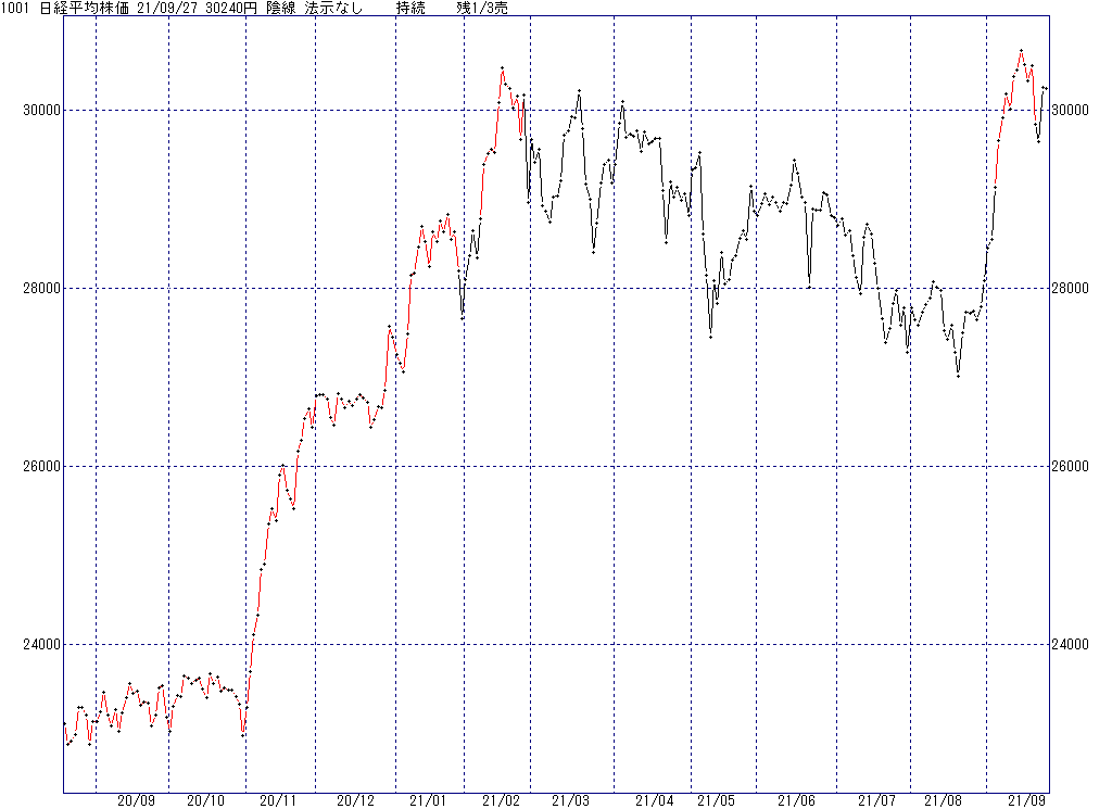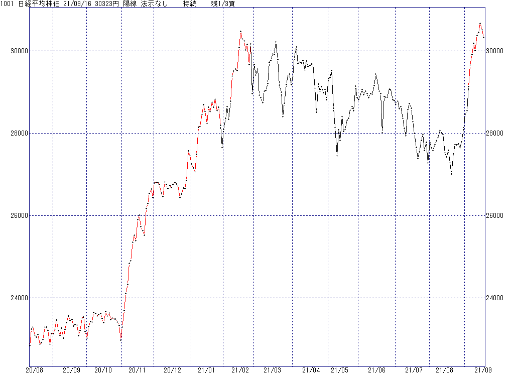 2021年9月27日(月)日中の取引終了時点で算出した中源線シグナルです。