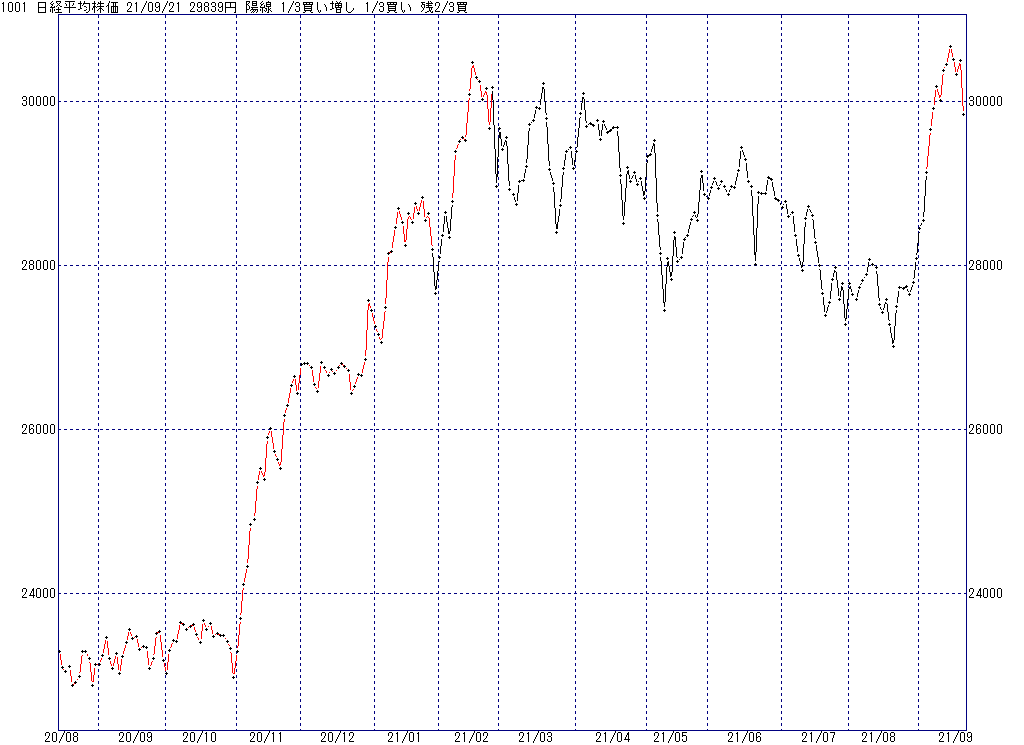 本日のサイン【陽線 法示なし 持続 残1/3買】