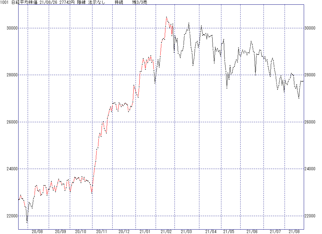 2021年8月27日(金)日中の取引終了時点で算出した中源線シグナルです。