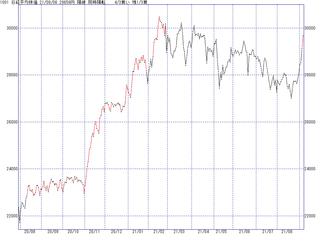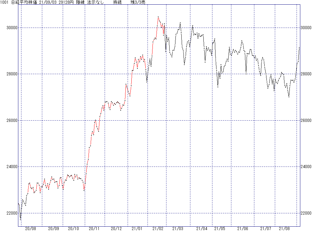 2021年9月3日(金)日中の取引終了時点で算出した中源線シグナルです。