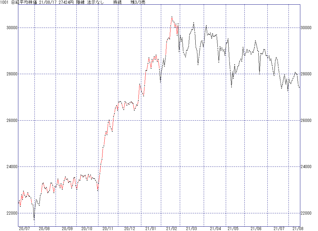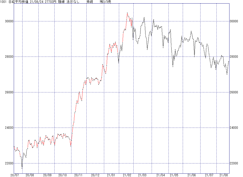 2021年8月24日(火)日中の取引終了時点で算出した中源線シグナルです。