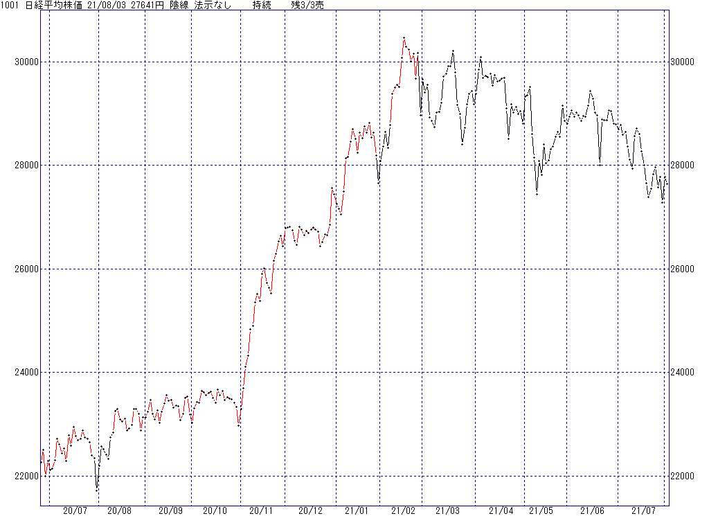 2021年8月3日(火)日中の取引終了時点で算出した中源線シグナルです。