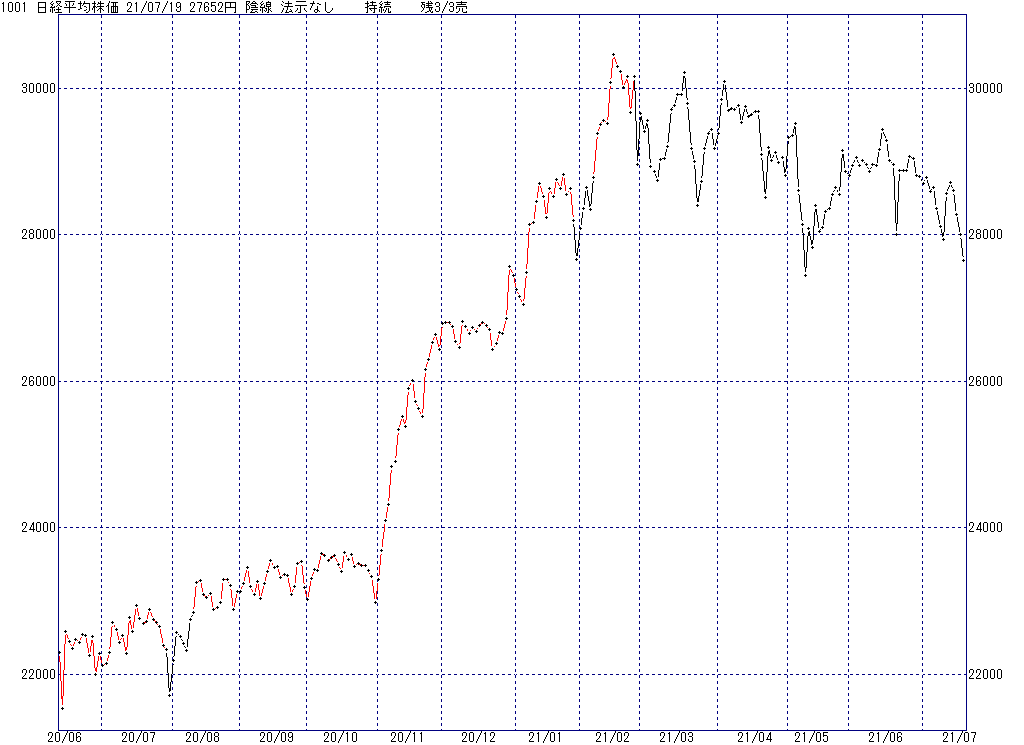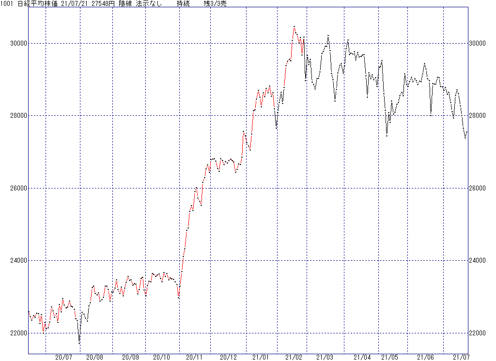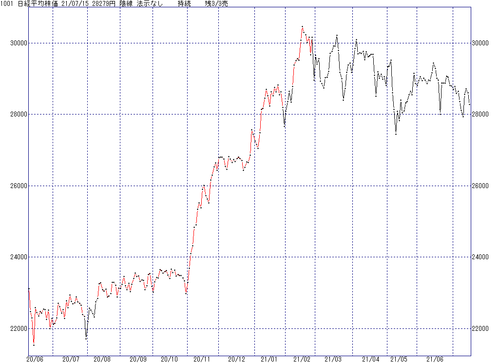 2021年7月26日(月)日中の取引終了時点で算出した中源線シグナルです。