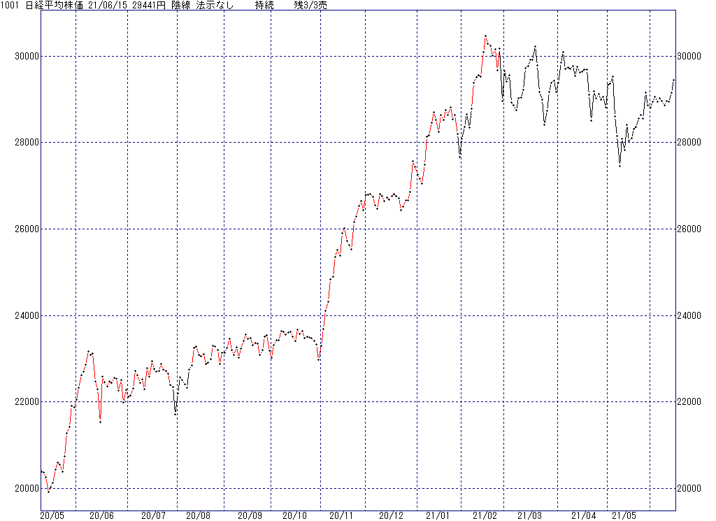 2021年6月23日(水)日中の取引終了時点で算出した中源線シグナルです。