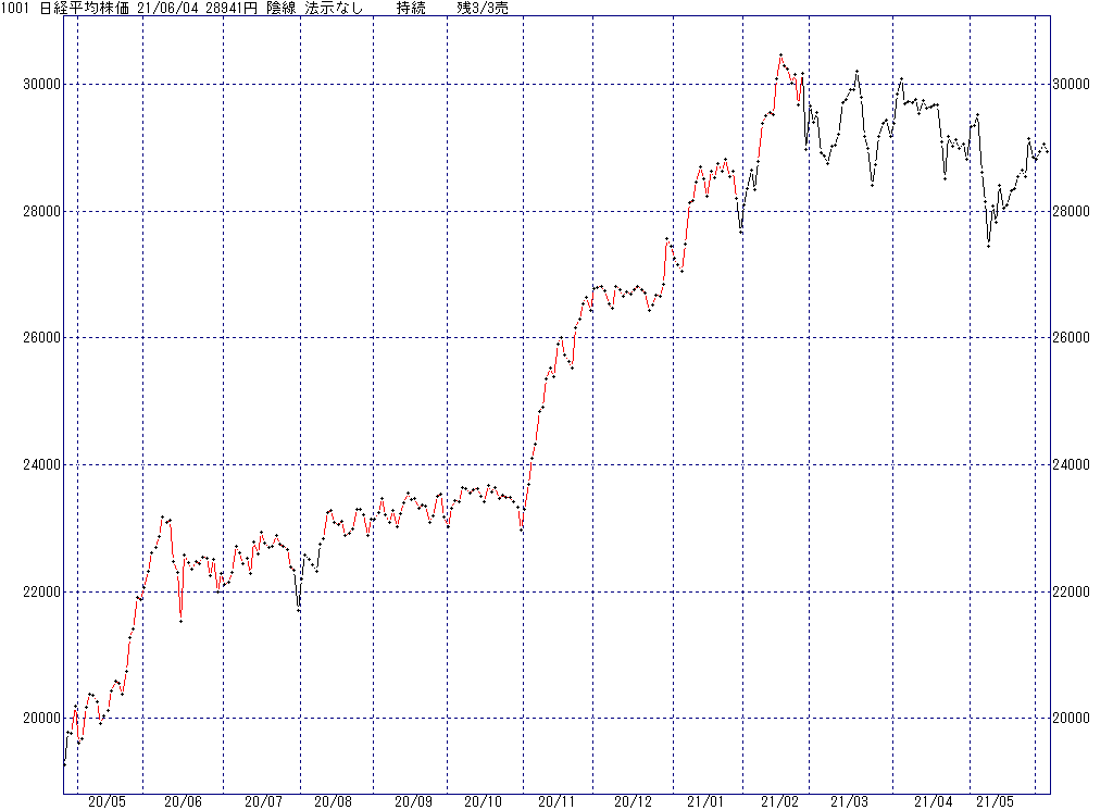 2021年6月4日(金)日中の取引終了時点で算出した中源線シグナルです。