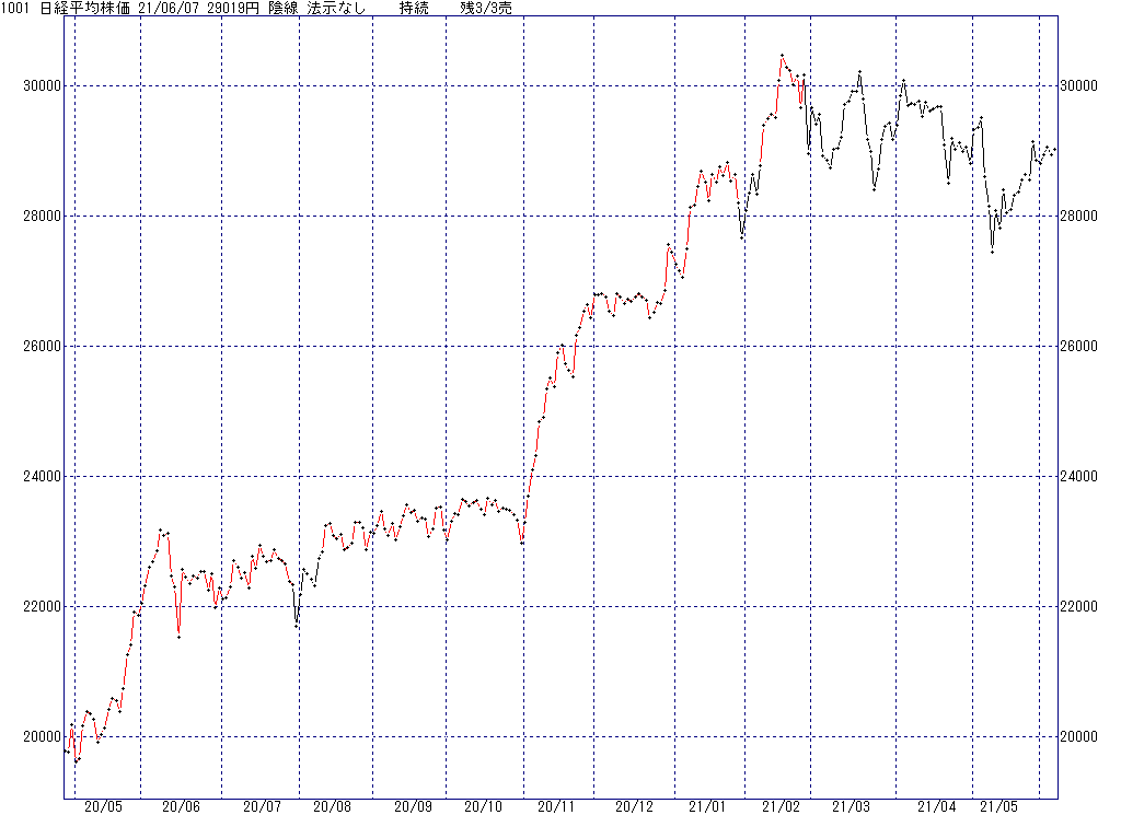 2021年6月7日(月)日中の取引終了時点で算出した中源線シグナルです。