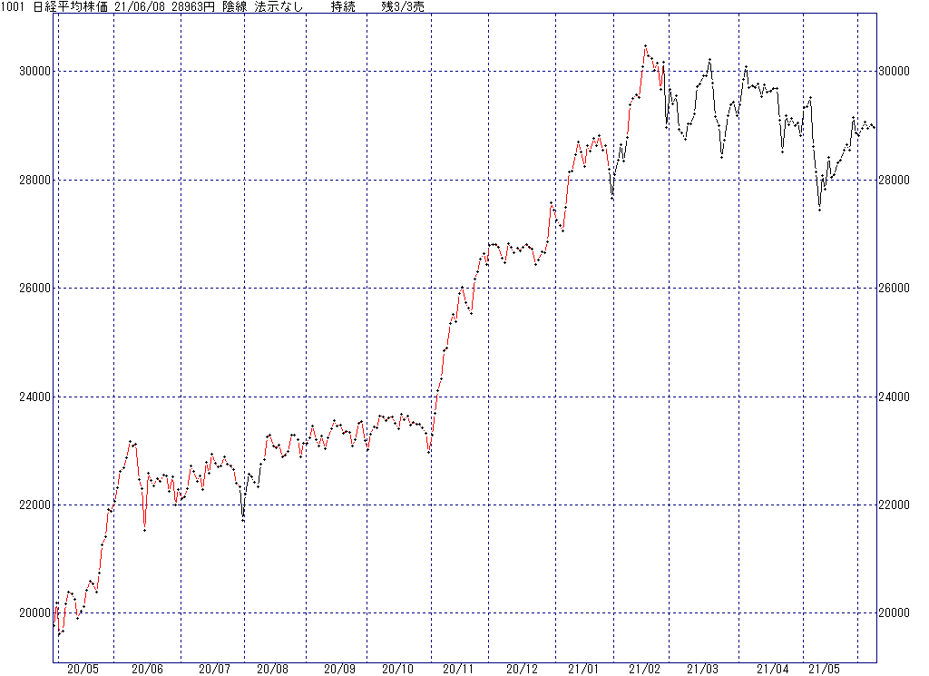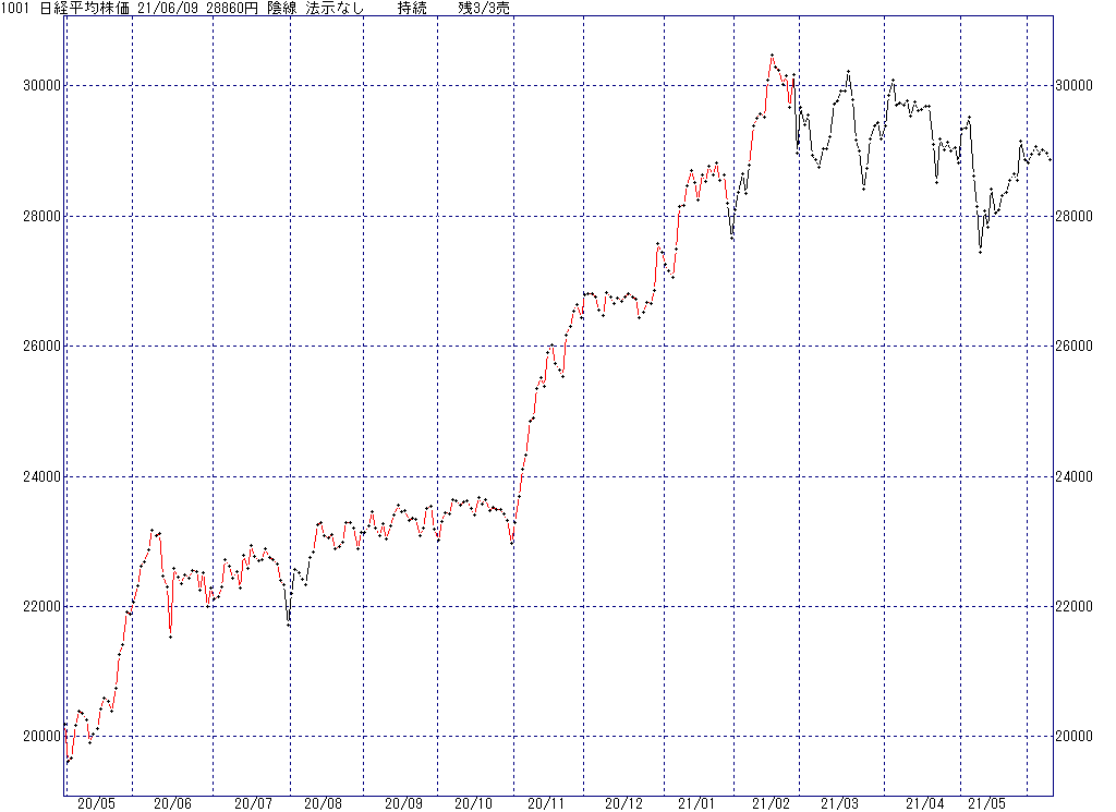 2021年6月9日(水)日中の取引終了時点で算出した中源線シグナルです。