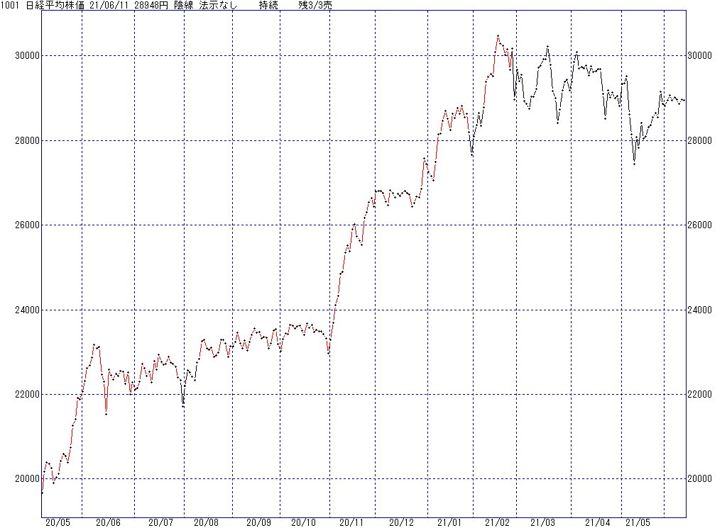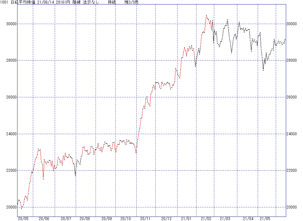 2021年6月14日(月)日中の取引終了時点で算出した中源線シグナルです。