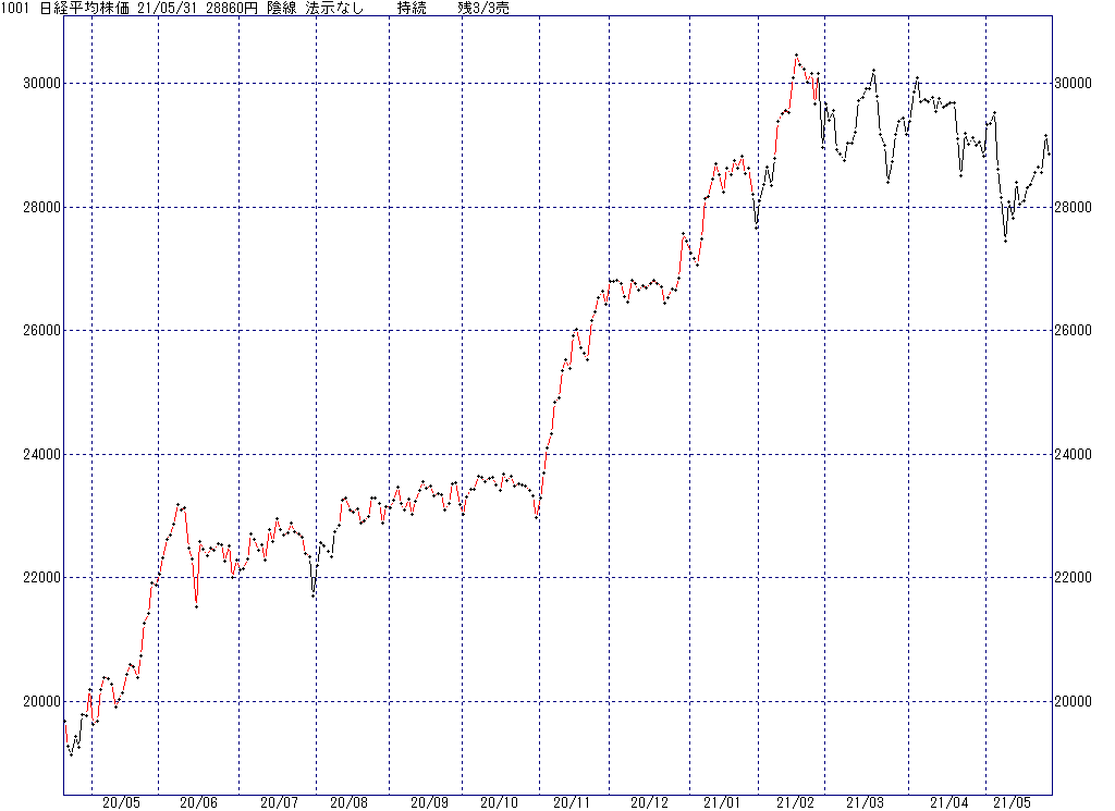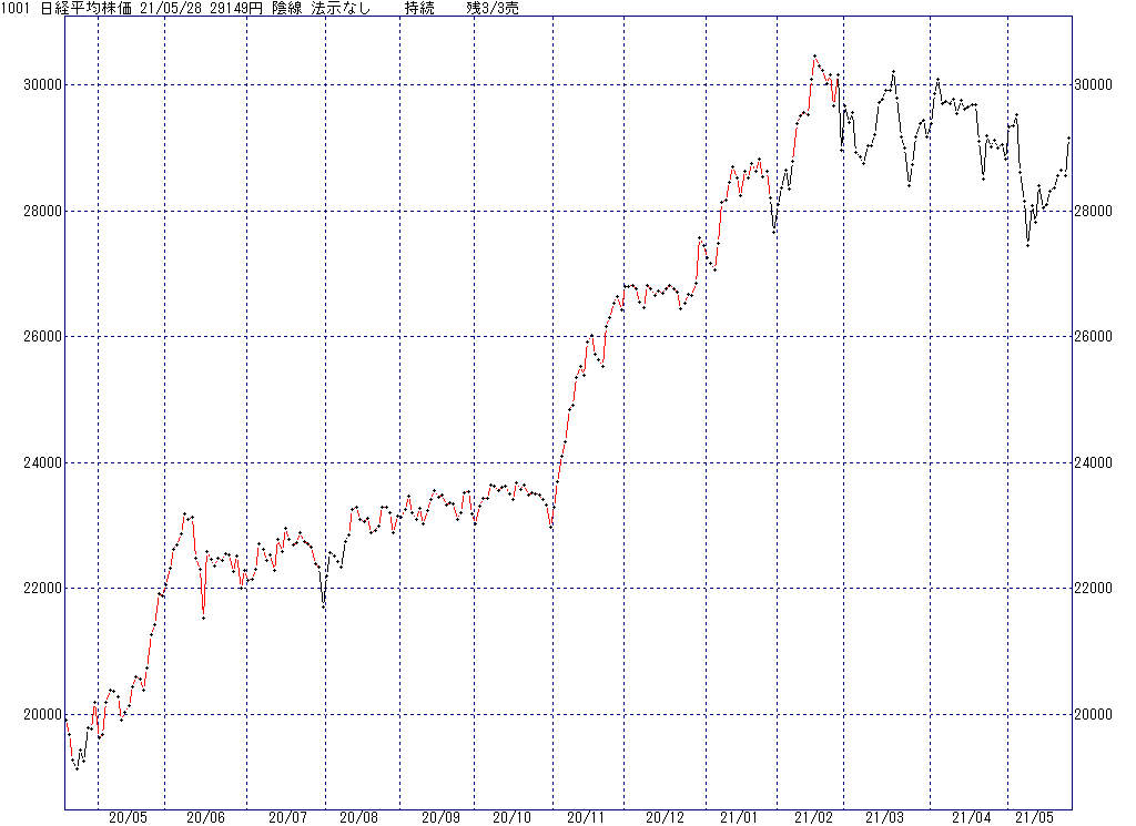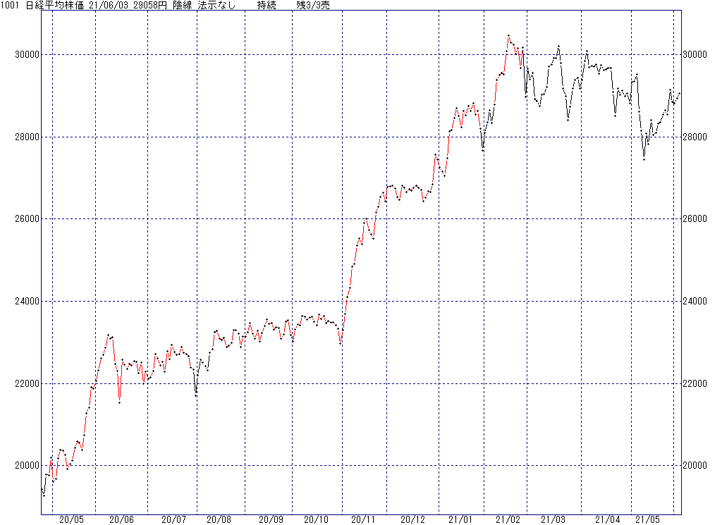 2021年6月3日(木)日中の取引終了時点で算出した中源線シグナルです。