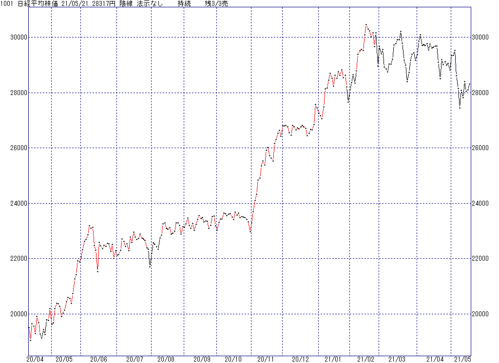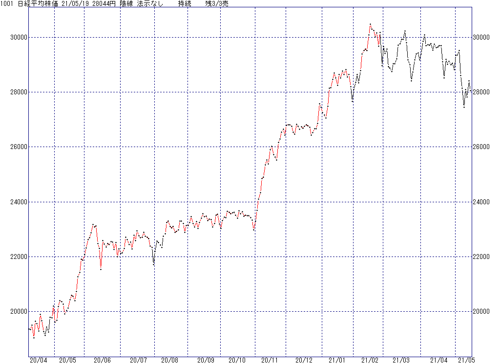 2021年5月21日(金)日中の取引終了時点で算出した中源線シグナルです。
