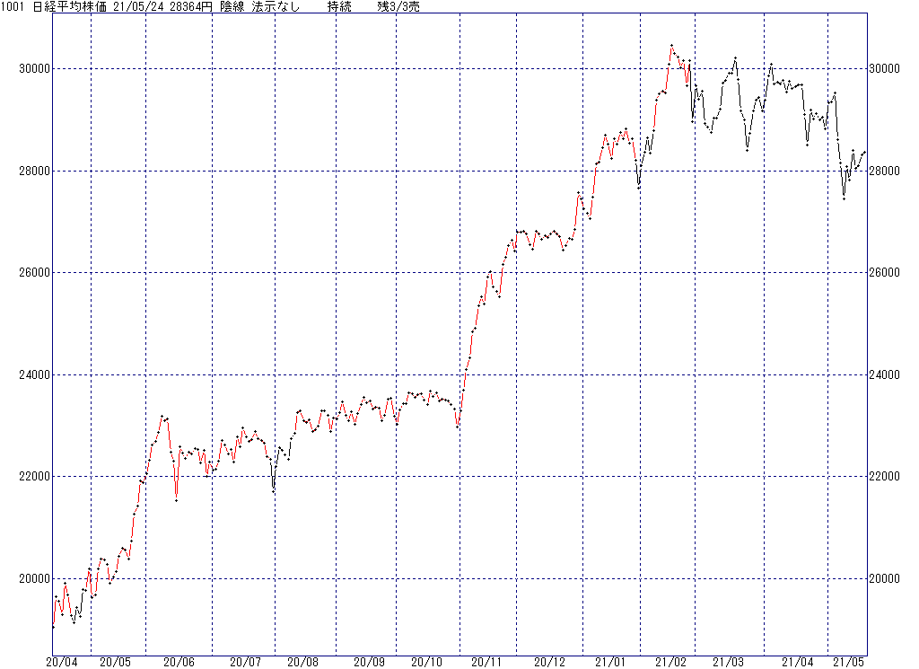 2021年5月24日(月)日中の取引終了時点で算出した中源線シグナルです。