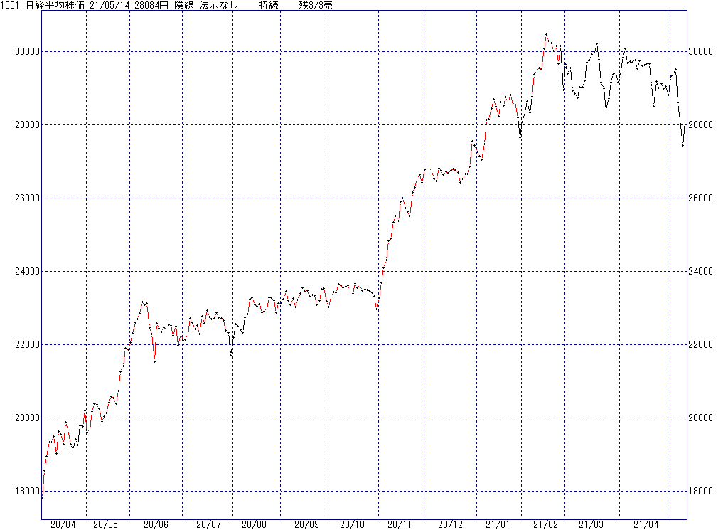 2021年5月14日(金)日中の取引終了時点で算出した中源線シグナルです。