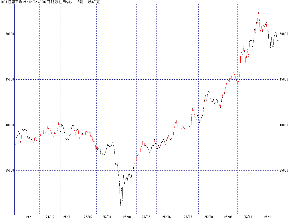 2025年12月3日(水)日中の取引終了時点で算出した中源線シグナルです。