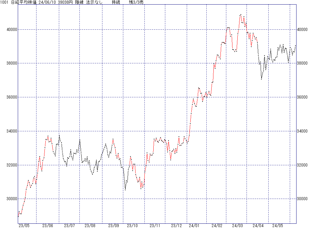 2024年6月10日(月)日中の取引終了時点で算出した中源線シグナルです。
