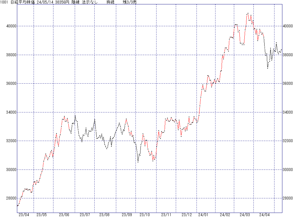 2024年5月14日(火)日中の取引終了時点で算出した中源線シグナルです。