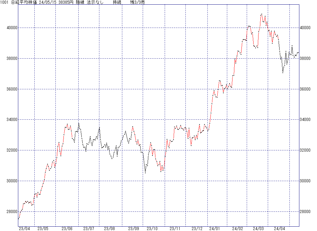 2024年5月15日(水)日中の取引終了時点で算出した中源線シグナルです。