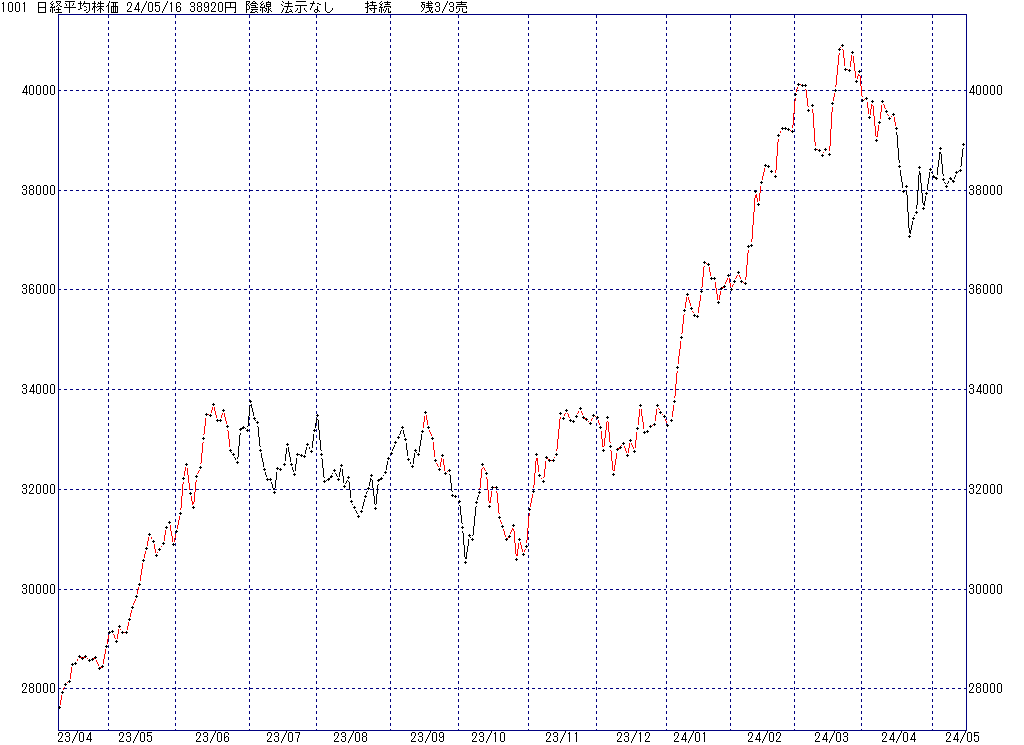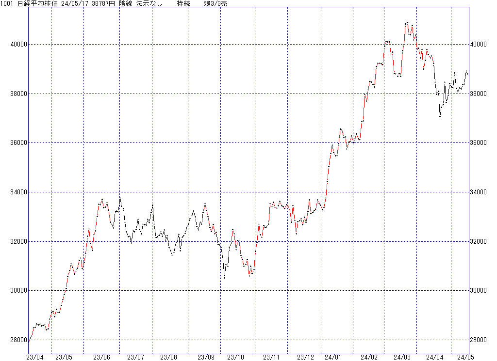 2024年5月17日(金)日中の取引終了時点で算出した中源線シグナルです。