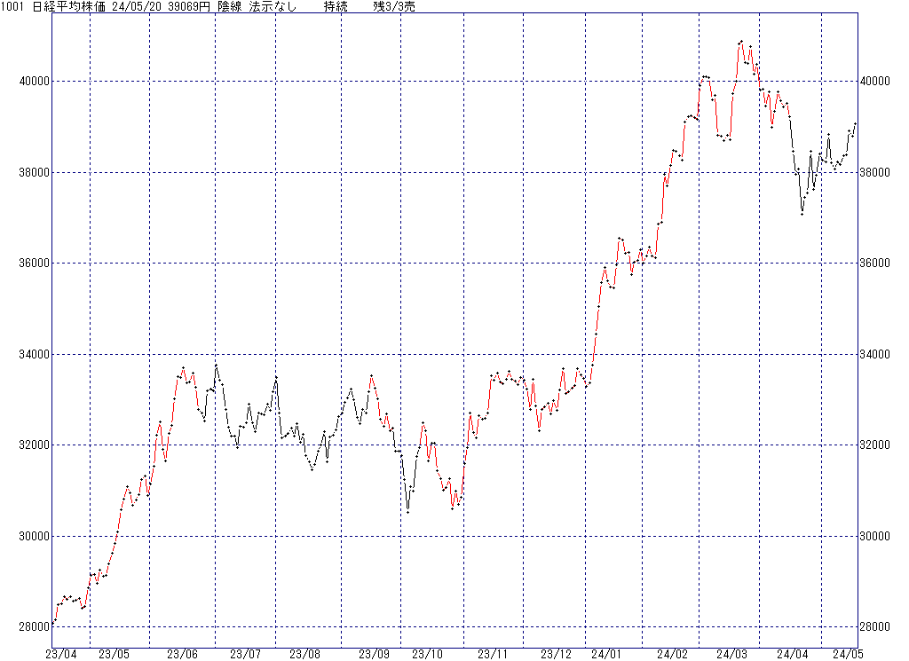 2024年5月20日(月)日中の取引終了時点で算出した中源線シグナルです。