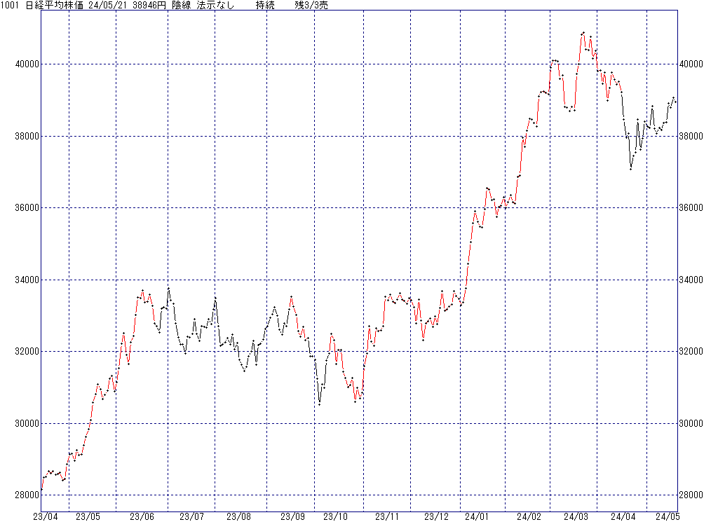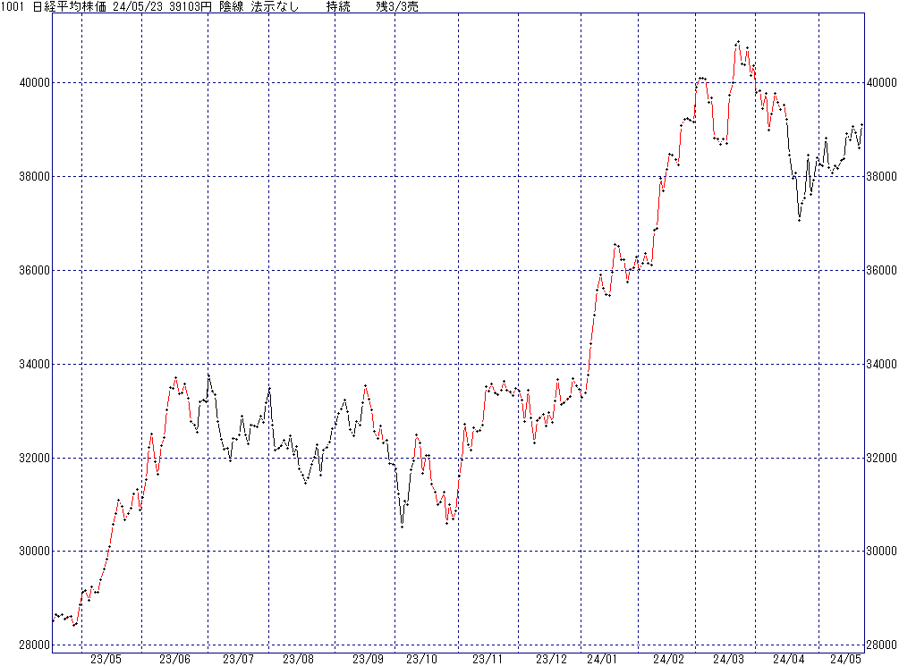 2024年5月23日(木)日中の取引終了時点で算出した中源線シグナルです。